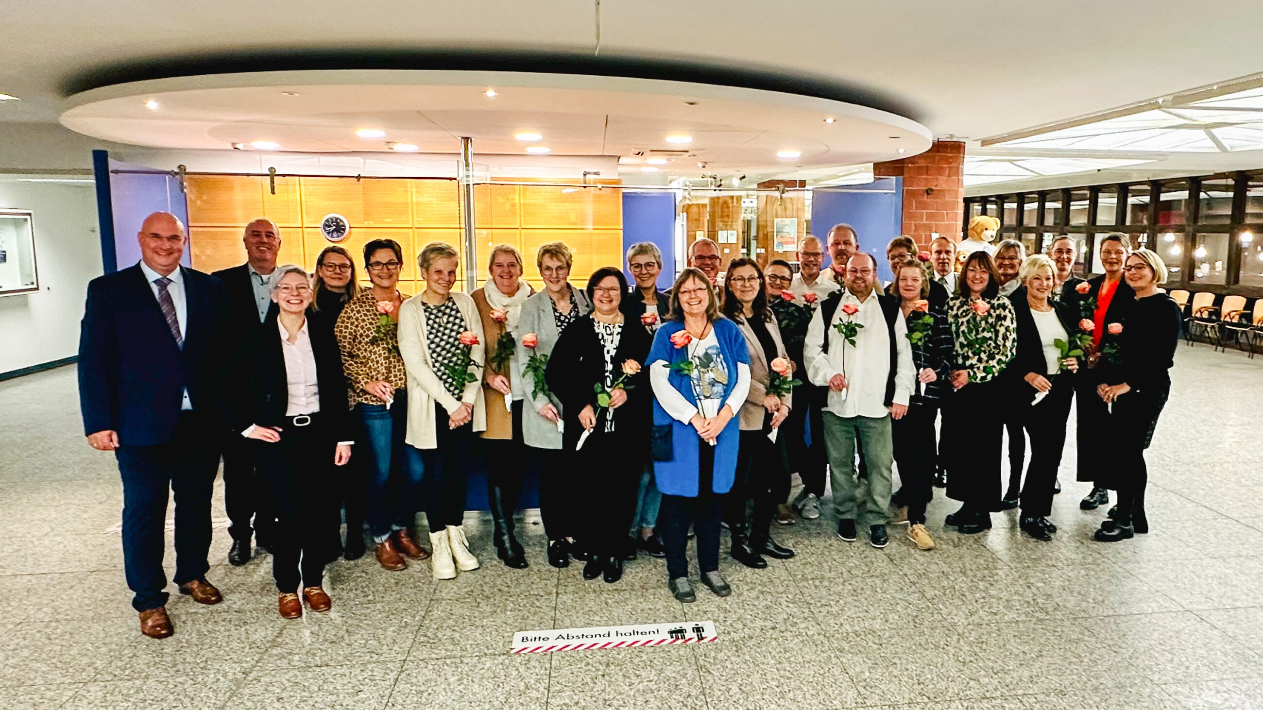 Zum 25-jährigen Dienstjubiläum: Maren Hölzel, Saliha Ariman-Ünlü, Jürgen Möller, Sven Wixforth-Panjakovic, Ella Brack, Jürgen Walz, Kirsten Niewöhner, Nikolaus Allegro Varchetta, Hiltrud Berger, Christoph Kies, Antonina Probst, Birgit Thiesbrummel, Silvia Ludwig und Martina Steiling.