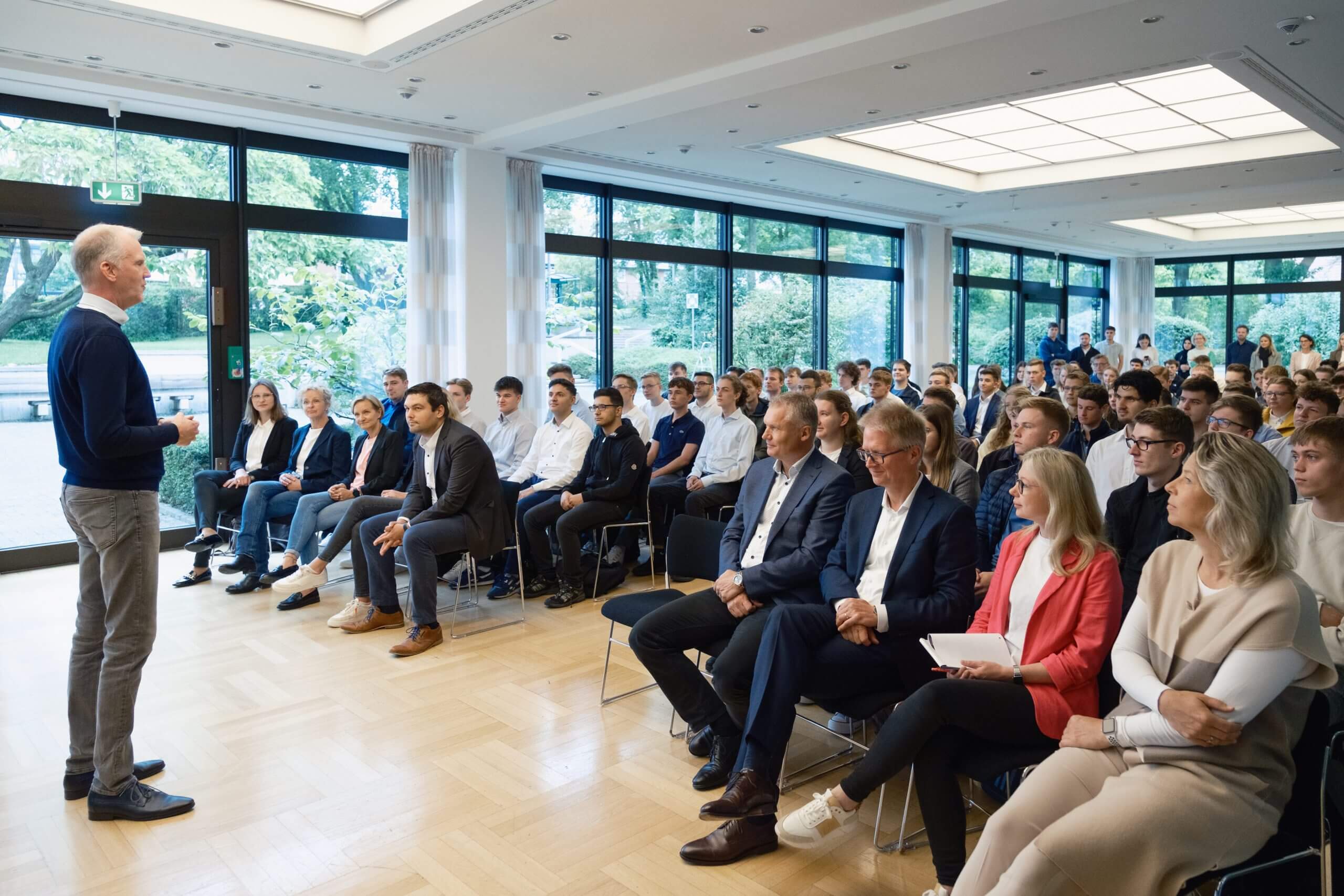 „Vielfältige Möglichkeiten für die Zukunft“ – Im Rahmen der Begrüßung im Corporate Center am Montag wünschte Klaus Röttger, Leiter der Abteilung ‚Zentrale Ausbildung‘, allen neue Auszubildenden und Studierenden einen erfolgreichen Start ins Berufsleben. „Wichtig ist, dass ihr im Rahmen der Ausbildung beziehungsweise des Studiums euren eigenen Weg findet und ihn selbst gestaltet – bei Bertelsmann findet ihr dafür die besten Voraussetzungen und bekommt vom Team der Ausbildungsabteilung jede denkbare Unterstützung“, sagte Röttger. Senta Puls, Leiterin der Zentralen Personalabteilung im Corporate Center, forderte die Berufseinsteiger:innen auf, neugierig zu sein, Fragen zu stellen und sich selbst aktiv einzubringen. „Bertelsmann ist ein vielfältiges Unternehmen, das euch ebenso vielfältige Möglichkeiten für die Zukunft eröffnet“, betonte sie. „Ich hoffe darum sehr, dass möglichst viele von euch nach ihrer Ausbildung oder ihrem Studium ihren Berufsweg im Konzern fortsetzen“, so Senta Puls.