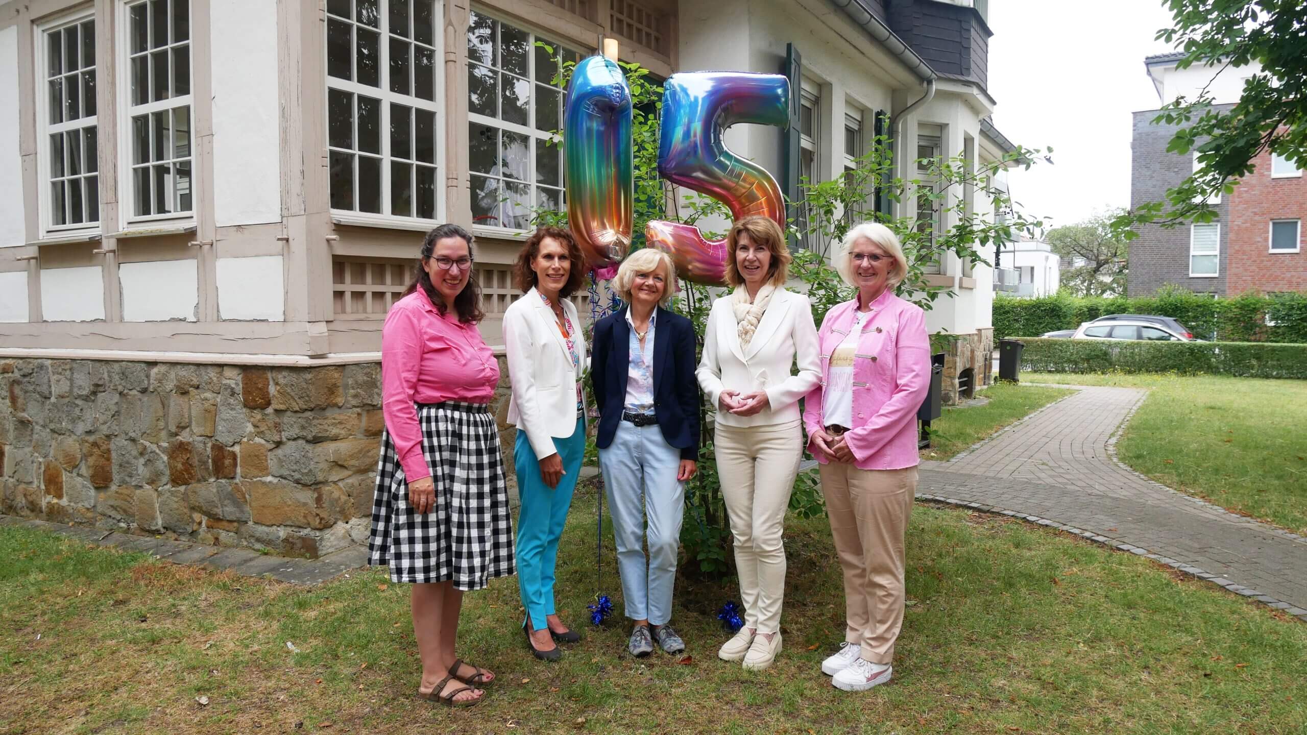 BU2: Freuen sich über den Erfolg von 15 Jahren „Erlebniswochen Ferien.Bilden.Schüler – Bildungsferien mit der Osthushenrich-Stiftung“: (v.l.) Dr. Mariella Gronenthal (stellv. Leitung VHS), Henrike Dulisch (VHS, Pädagogische Leiterin), Dr. Regina Bredenbach-Rämsch (Koordination der Erlebniswochen, VHS), Dr. Martina Schwartz-Gehring (stellv. Vorstandsvorsitzende der Osthushenrich-Stiftung) und Claudia Holle (Geschäftsführerin der Osthushenrich-Stiftung). Foto: Stadt Gütersloh