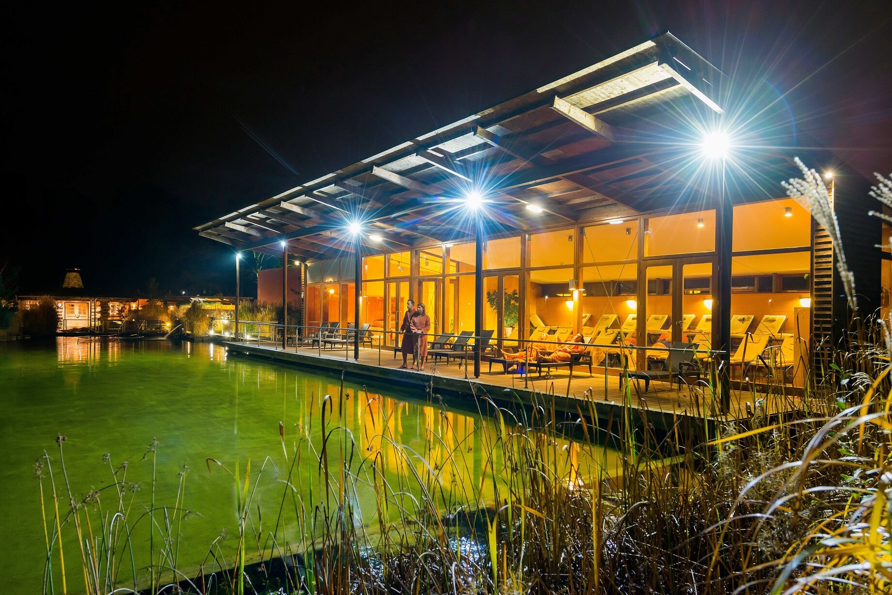 Besonderes Erlebnis: Zur Langen Saunanacht entspannen die JärveSauna-Gäste in spätabendlichem Ambiente.