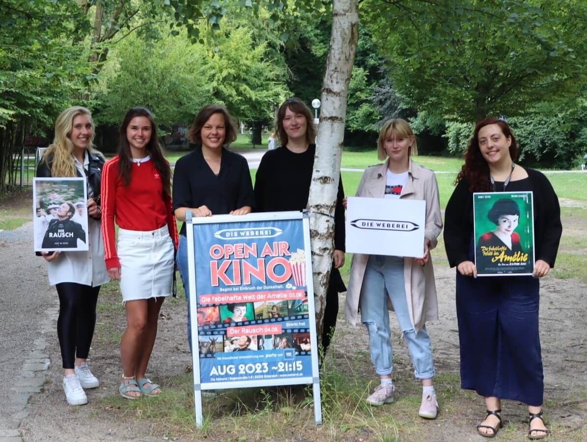 Foto: Laurina Tellenbrock, Laura Seppmann, Jana Felmet, Stefanie Scholz-Braun, Isabel Kuster und Sophie Honoré vom Weberei-Team freuen sich auf zwei spannende Film-Abende im Weberei-Park