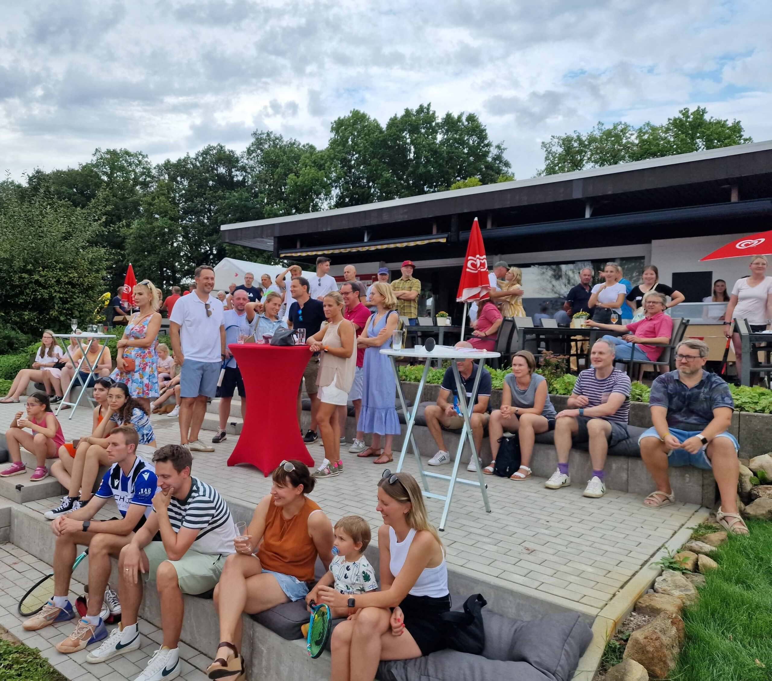 Im Anschluss unterstrichen Kreissportbund-Chef Hans Feuß und Vereinspräsident Jörg Kastner in ihrer Grußbotschaft die Wichtigkeit des Vereinssports. “Vereine sind geil, helfen gegen Einsamkeit und ehrenamtliches Engagement macht sogar Freude”, betonte Feuß, der sich als Handballer auch mit dem Tennissport erstaunlich gut auskannte. Vereinsvorsitzender Kastner erinnerte daran, dass der Verein von der Geburtsstunde an bis heute durch das Anfassen und Mitmachen der Mitglieder so stabil und erfolgreich sei. Nicht umsonst spielten zahlreiche Familien mittlerweile in der dritten Generation bei Rot-Weiß Tennis.