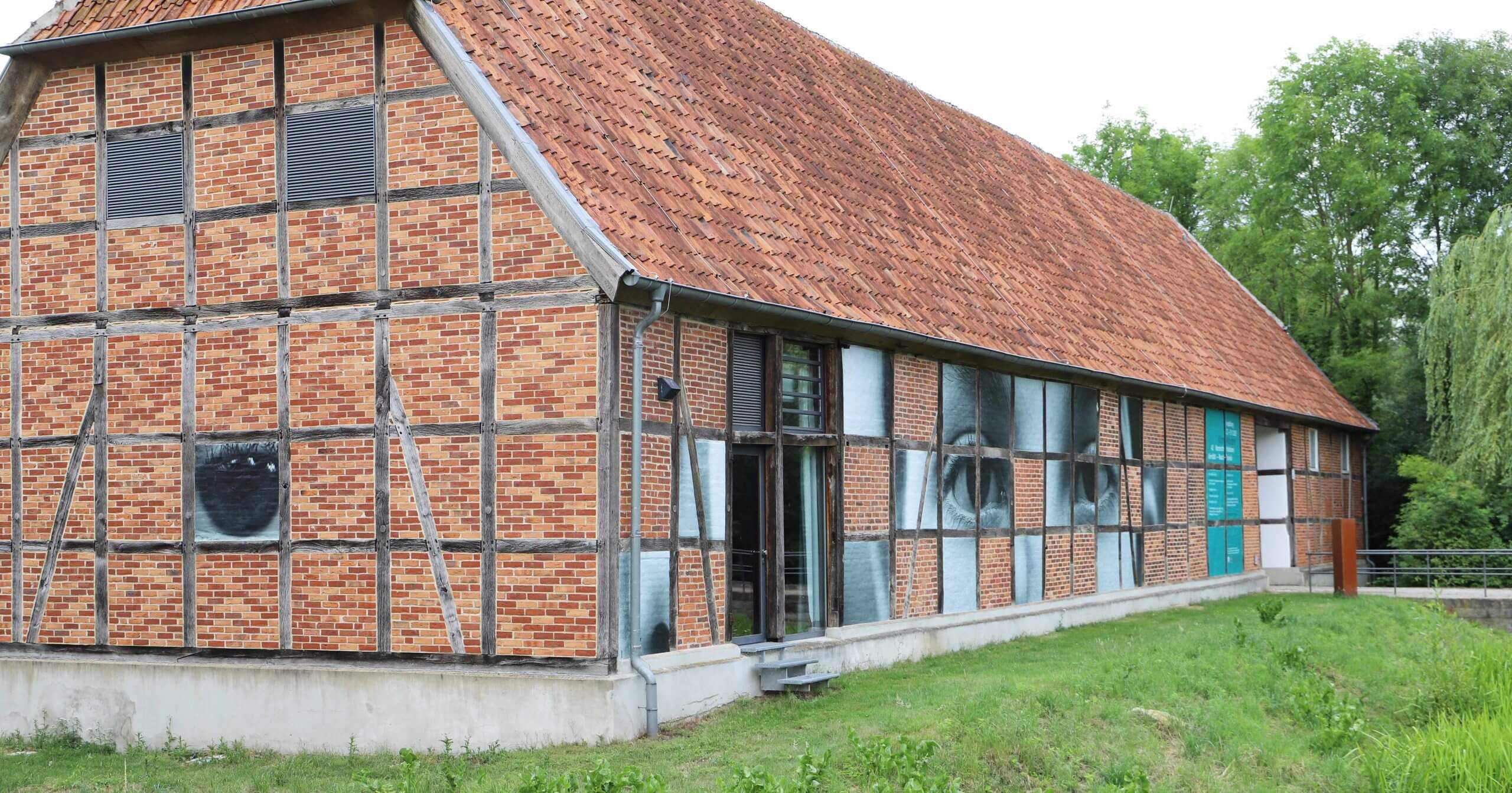 Noch bis Ende Oktober 2023 ist das Kulturgut Haus Nottbeck in Oelde-Stromberg Teil einer Kunstausstellung der besonderen Art: Das für seine partizipativen Street Art Projekte bekannte Künstlerkollektiv Mannstein & Vill gestaltete im Rahmen des Regionalen Kultur Programms NRW (RKP) großformatige Fotocollagen, die an Fassaden von Schlössern und Burgen im Münsterland angebracht sind. Auf dem Kulturgut tritt unter dem Titel „cosa mentale“ ein fragmentiertes Portraitfoto sowohl mit dem historischen Fachwerk als auch mit den Besucher*innen in Dialog. Eine der Botschaften: Ein Blick hinter die Fassade des Kulturzentrums lohnt sich!