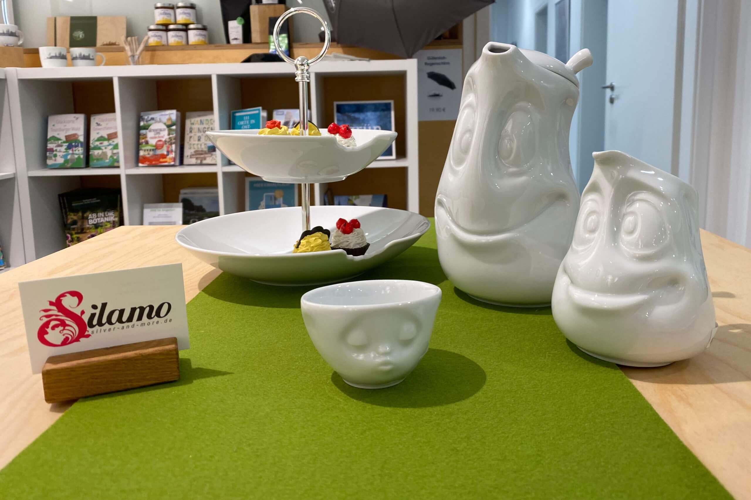 Mit ihrem Kleinunternehmen „Silamo“ hat sich Ursula Junkerkalefeld aus Rietberg einen Traum erfüllt. Ihr Sortiment umfasst überwiegend Produkte aus den Bereichen Wohnen, Garten und Dekoration. Derzeit bietet die Kleinunternehmerin ihr Produktportfolio über einen Laden in Rietberg und einen eigenen Online-Shop (www.silamo.de) sowie im Winter auf verschiedenen Weihnachtsmärkten in der Region an. Bis zum 11. November präsentiert „Silamo“ dem Gütersloher Publikum amüsantes Geschirr der Marke „Fiftyeight Products“ und kunstvolle Lampen im Pop-Up-Regal von Gütersloh Marketing (gtm) in der Berliner Straße 63.