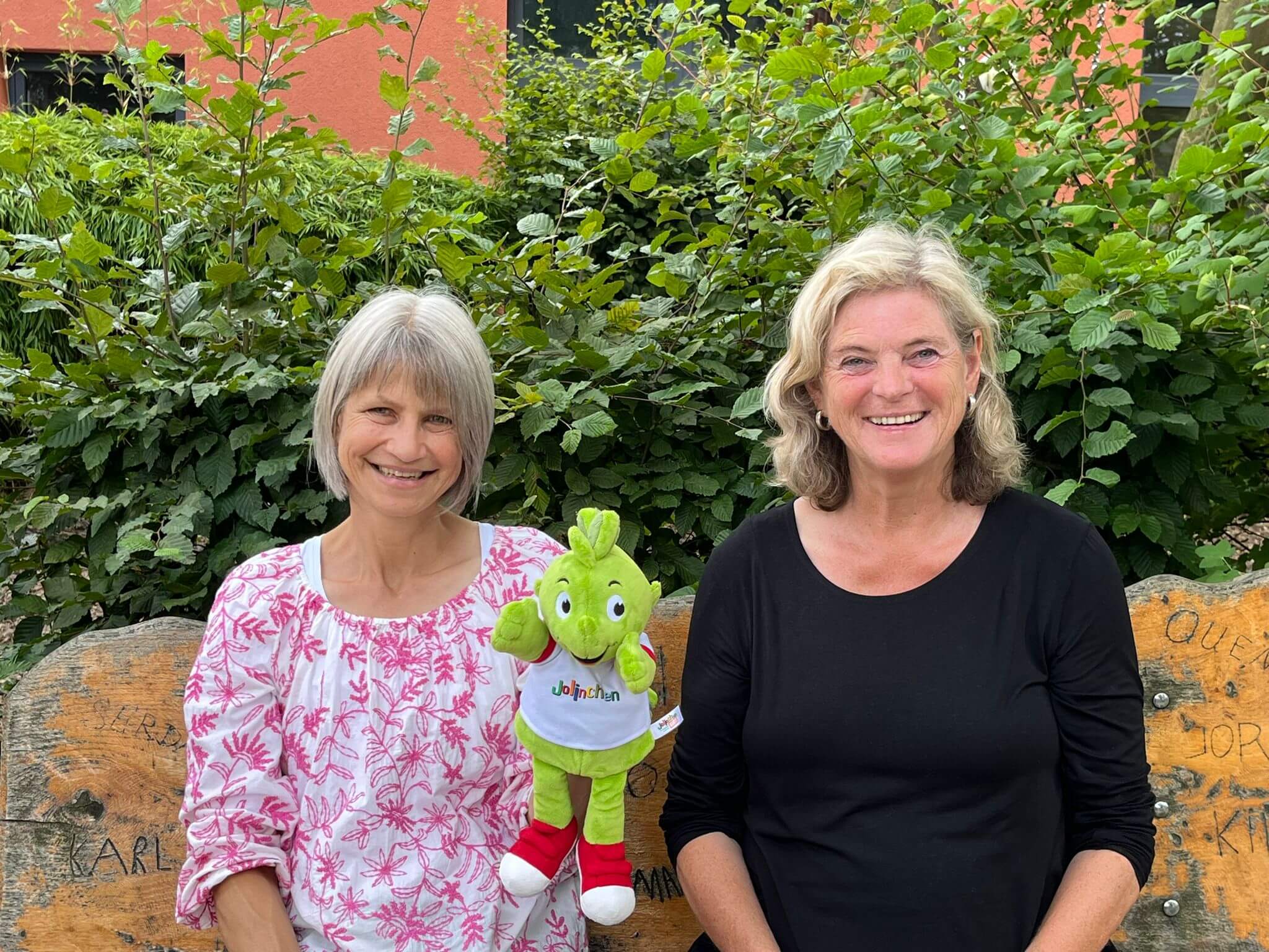 Die AOK-Expertinnen begleiten das evangelische Familienzentrum Comenius in Gütersloh bei der Durchführung von ‚JolinchenKids‘ (von links: Sabine Bartnik (Dipl. Oecotrophologin und AOK-Präventionsspezialistin) und Waltraud Friedrich (Systemische Beraterin). Foto: AOK/hfr.