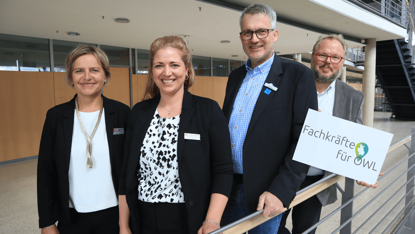 Haben zur Informationsveranstaltung eingeladen: (v.l.) Nicola Weber (pro Wirtschaft GT), Sandra Pollmeier (Agentur für Arbeit), Jürgen Blomeier (Jobcenter Kreis Gütersloh) und Andreas Lühmann (Regionalagentur OWL). Foto: Kreis Gütersloh