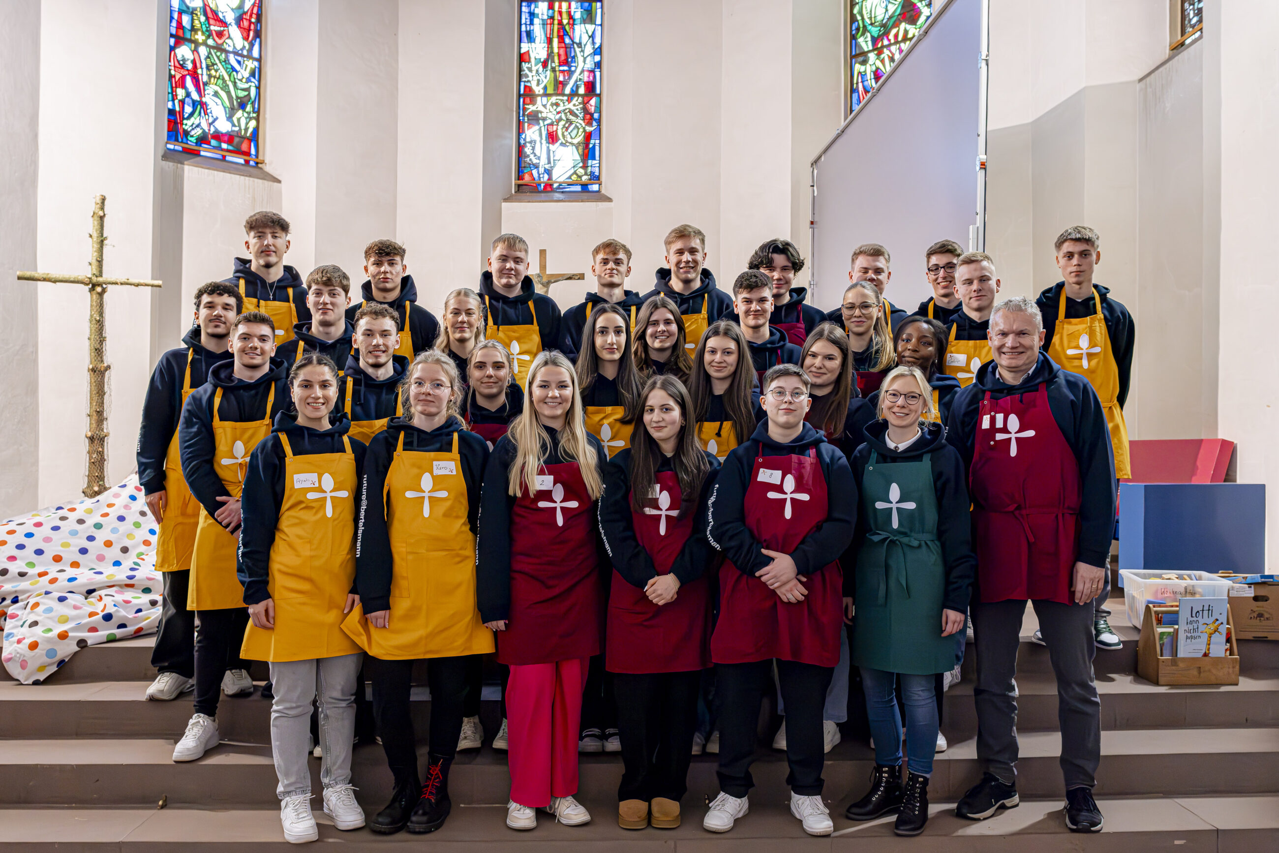 Die Auszubildenden hatten sich bereiterklärt, von 12 bis 14 Uhr bei der Ausgabe des Mittagessens zu helfen. Begleitet wurden sie von ihren Klassenlehrer:innen Lena Burghardt und Ernst-Hermann Bedey. „Es ist eine super Sache, dass wir heute die Gelegenheit haben, bei der Vesperkirche mitzuhelfen und uns sozial zu engagieren“, sagt der Auszubildende Simon Wippermann. „Wenn mehr Menschen Nächstenliebe zeigen würden, wäre die Welt ein besserer Ort.“