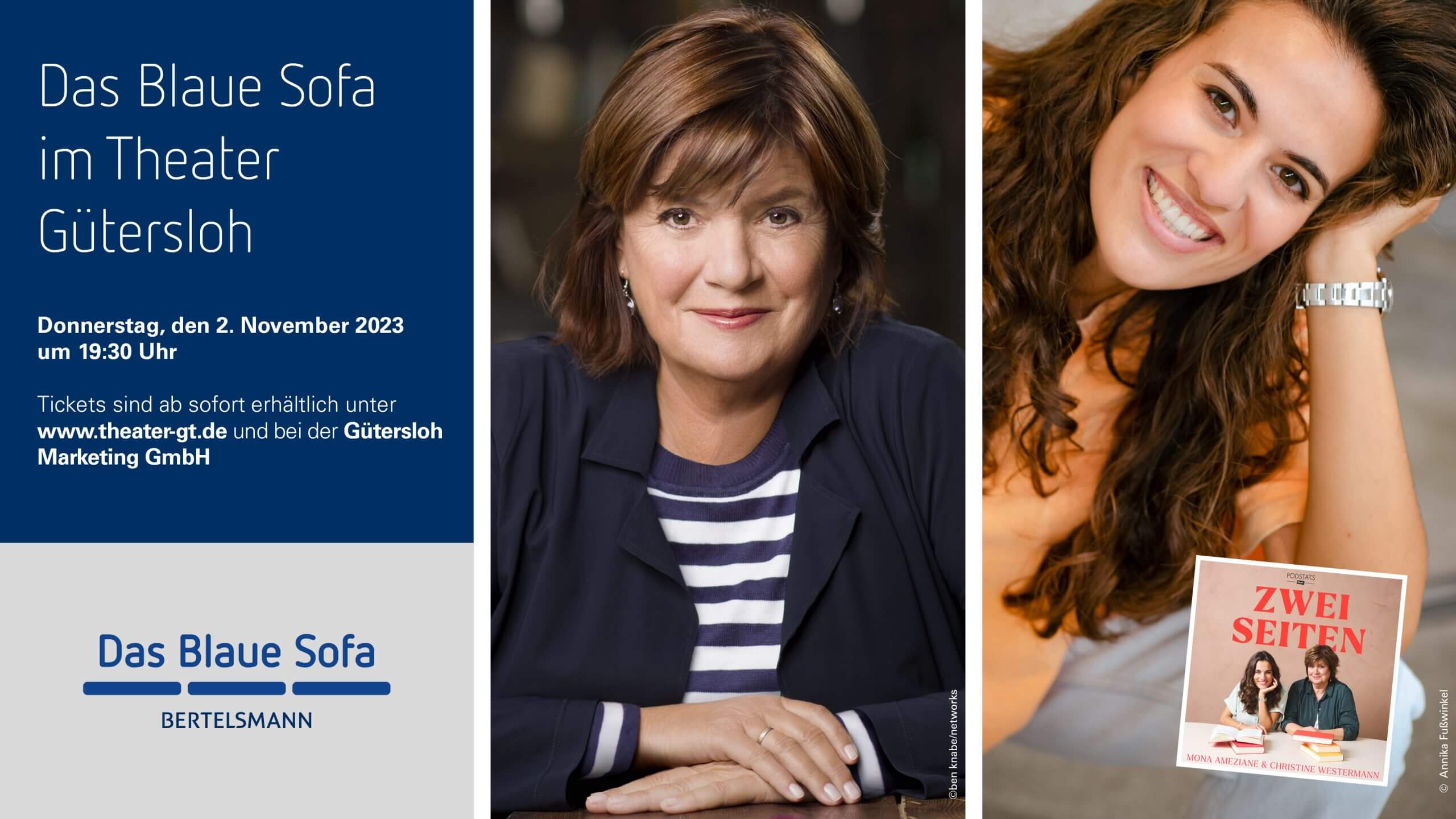 Gütersloh, 08. September 2023 – Das internationale Medien-, Dienstleistungs- und Bildungsunternehmen Bertelsmann holt am Donnerstag, 2. November Christine Westermann und Mona Ameziane auf das Blaue Sofa im Theater Gütersloh. Die bekannten Moderatorinnen geben in einem Gespräch ihre aktuellen Buchtipps für die kalte Jahreszeit.