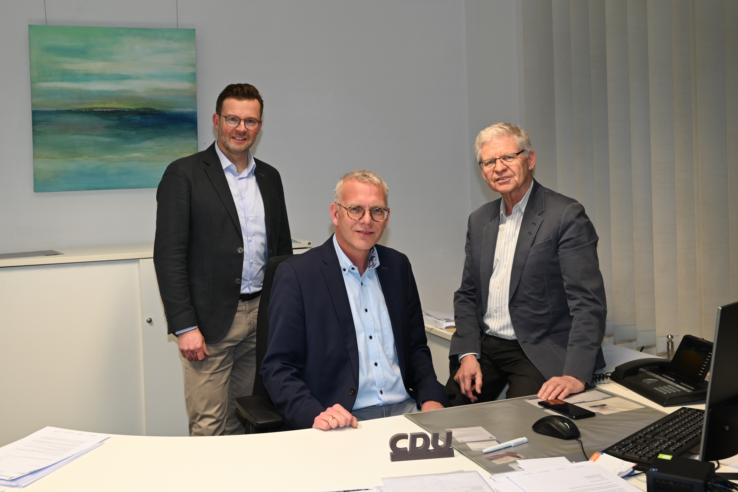 Foto: CDU-Kreisvorsitzender Raphael Tigges MdL, Klaus Oehler und Hubert Kleinemeier (v.l.) in der Kreisgeschäftsstelle der CDU in Gütersloh.