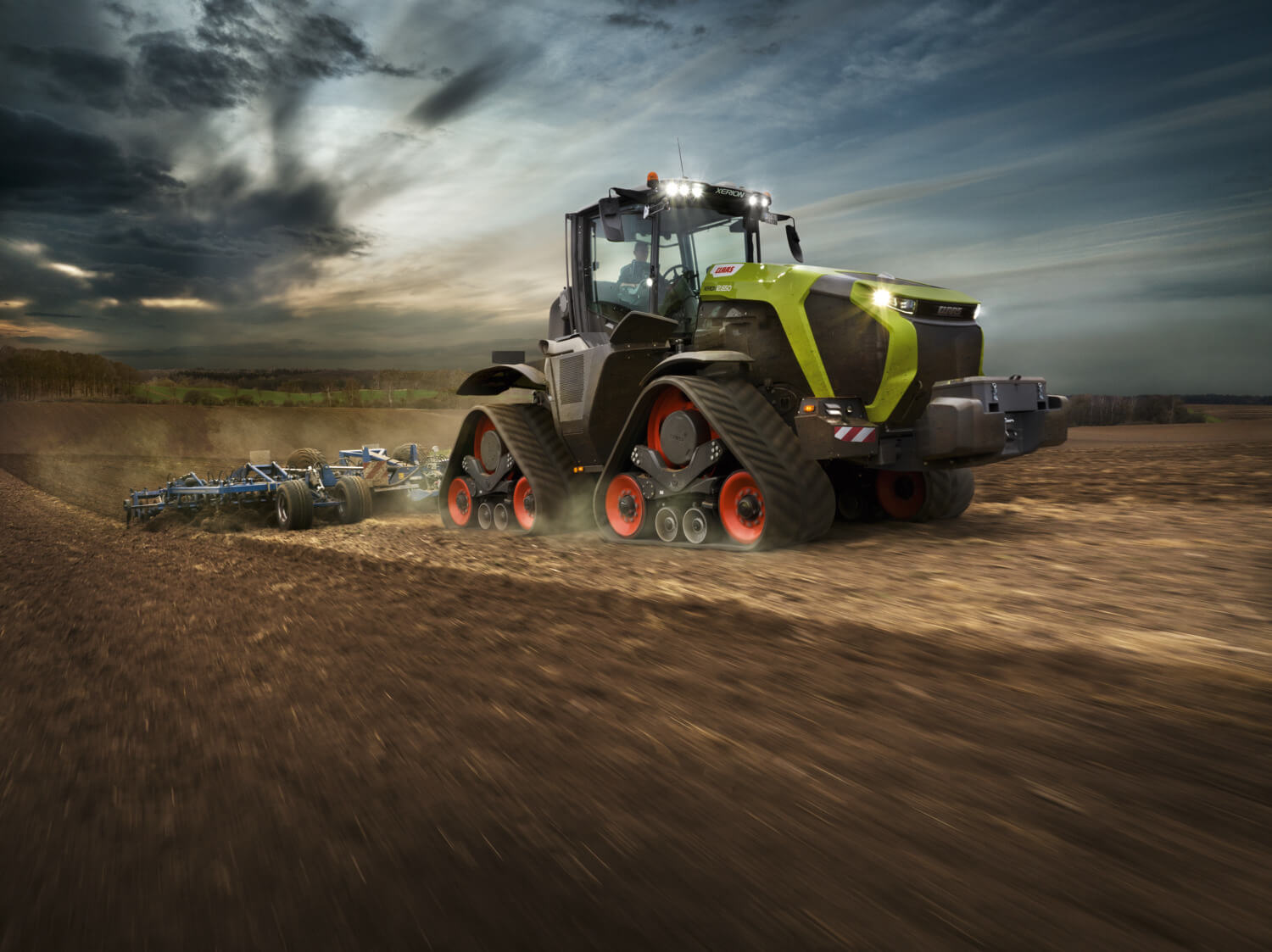Einzigartig in dieser Traktorenklasse sind das CMATIC Stufenlosgetriebe für bis zu 50 km/h Maximalgeschwindigkeit (mit den TERRA TRAC Raupenlaufwerken bis zu 40 km/h), die Niedrigdrehzahl-Arbeitshydraulik mit Fördermengen von bis zu 537 l/min, die neu entwickelten und stoßgedämpften TERRA TRAC Dreiecksraupenlaufwerke sowie die konkurrenzlose Rundumsicht aus der vierpunktgefederten Kabine mit dem größten Platzangebot. Konkurrenzlos sind darüber hinaus die extreme Belastbarkeit und die präzise Lenkung dank durchgehendem Rahmen mit zwei Lenkachsen, das kompromisslose Allradkonzept mit ausgeglichener 50:50 Gewichtsverteilung sowie das CEMOS Fahrerassistenz- und Prozessoptimierungssystems. „Zugeffizienz ist schon immer fest in der DNA unserer Traktoren verankert“, ergänzt Dr. Johannes Weisbrodt, Senior Vice President Product Unit System Tractors und verantwortlich für den XERION. „Mit der XERION 12er Serie haben wir die bekannten und von XERION Kunden in aller Welt geschätzten Stärken aufgegriffen, weiterentwickelt und mit mehr als 25 Jahren TERRA TRAC Entwicklungs- und Produktionserfahrung zu einem starken, überzeugenden Gesamtkonzept vereint.“