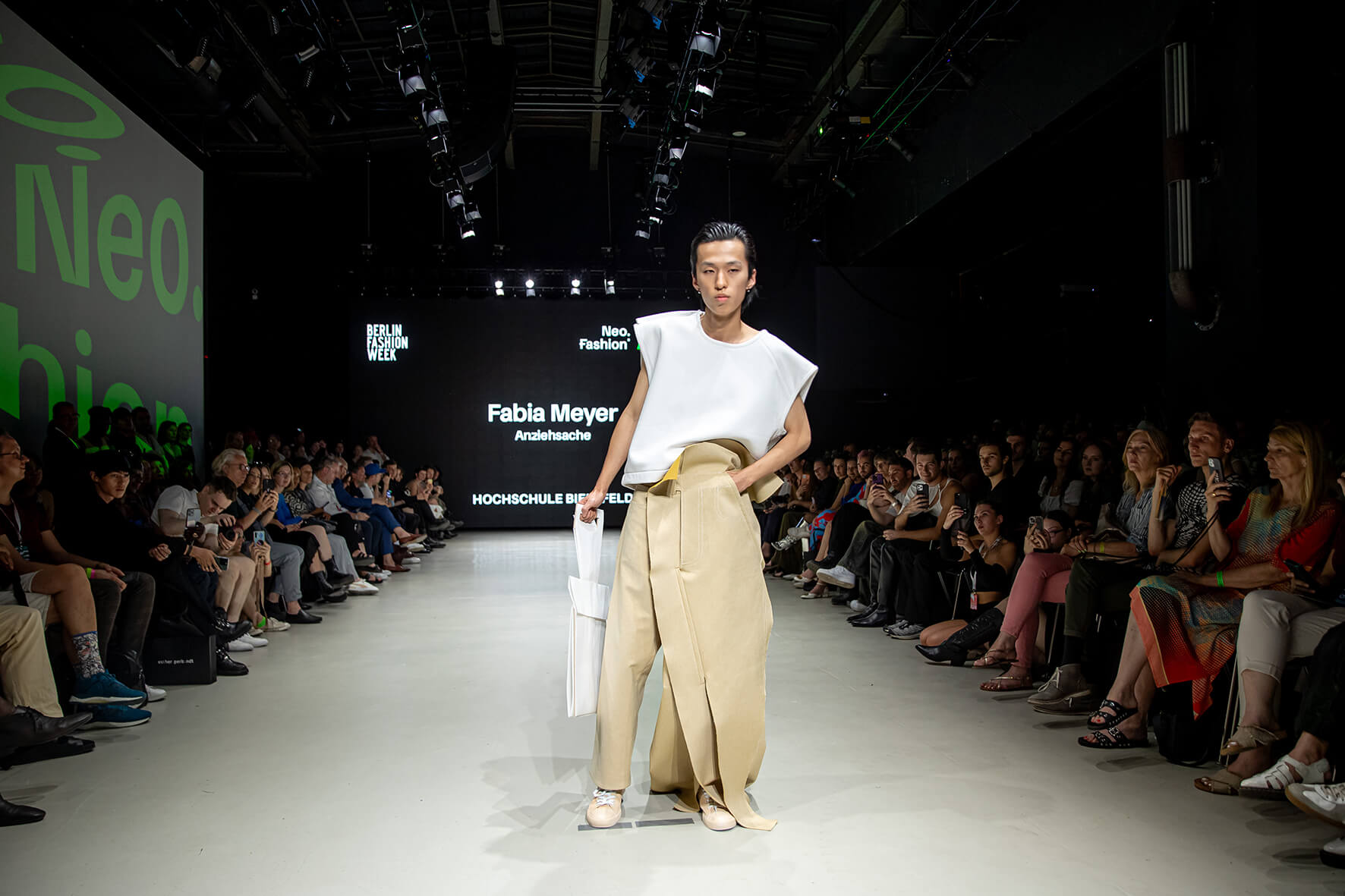 Bei der siebten Auflage der Neo.Fashion in Berlin präsentierten die besten Nachwuchstalente aus ganz Deutschland ihre Abschlusskollektionen. Mit dabei: Sechs Mode-Absolventinnen der Hochschule Bielefeld, darunter Fabia Meyer, deren Kollektion mit dem Preis für Bestes Design ausgezeichnet wurde.