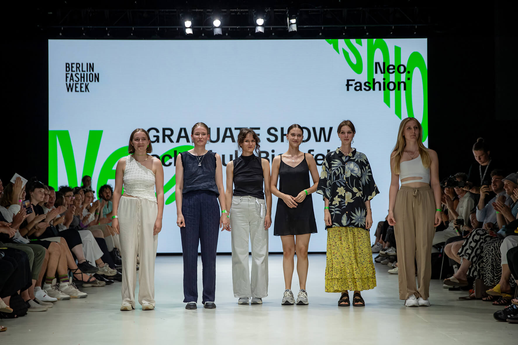 Bielefeld (hsbi). Den besten Nachwuchstalenten aus dem Modedesign eine Bühne bieten – das ist Ziel der Neo.Fashion, die jährlich im Rahmen der Berlin Fashion Week stattfindet. Am 11. und 12. Juli präsentierten über 80 Absolventinnen und Absolventen von neun Hochschulen aus ganz Deutschland vor mehr als 2.000 Gästen ihre Abschlusskollektionen. Darunter auch sechs Absolventinnen der Studienrichtung Mode des Fachbereichs Gestaltung der Hochschule Bielefeld (HSBI). Erneut gestaltete die HSBI die Teilnahme an der Neo.Fashion in Kooperation mit dem Modedesign Department der HAW Hamburg. Von der HSBI nahmen Cara Determeyer, Johanna Heitz, Esther Rudolph, Jana Przibylla, Jasmina Schunder (alle Bachelor) und Fabia Meyer (Master) an der Neo.Fashion 2023 teil.