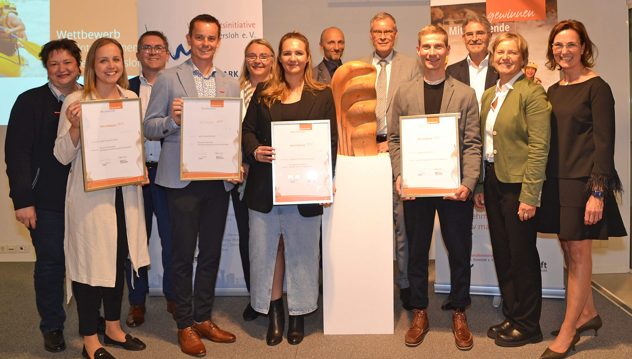 Insgesamt 18 Arbeitgeber hatten mit einer ausgewählten Maßnahme am Wettbewerb teilgenommen. Sechs Maßnahmen wurden von der Wettbewerbs-Jury bestehend aus Vertreterinnen und Vertretern der Kammern, Unternehmen, kommunalen Akteuren und der Wirtschaftsinitiative Kreis Gütersloh für ein öffentliches Voting ausgewählt. Mehr als 1.100 Stimmen wurden abgegeben und entschieden so in einer knappen Abstimmung über den Ausgang des Wettbewerbs.