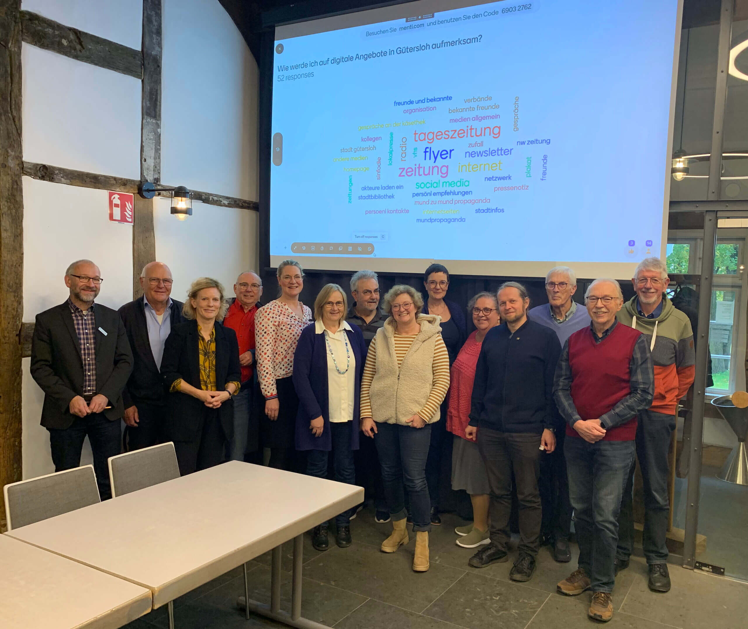 Gütersloh (gpr). Ist Online-Banking wirklich sicher? Und wie funktioniert das eigentlich genau mit diesem Smart Home? Diese Fragen stellen sich viele Seniorinnen und Senioren. Häufig schrecken sie vor digitalen Angeboten zurück – aus Unkenntnis. Hier wollen Akteure der offenen Senioren- und Ehrenamtsarbeit in Gütersloh Abhilfe schaffen. Sie trafen sich jetzt auf Einladung der Stadt Gütersloh in Zusammenarbeit mit den Fachberatungen für Senioren- und Ehrenamtsarbeit der Arbeitsgemeinschaft der Freien Wohlfahrtsverbände im Kreis Gütersloh zu einem Runden Tisch im Spexarder Bauernhaus. Das Ziel des Arbeitstreffens: ein Netzwerk unter den Akteuren schaffen, um aufeinander verweisen und die Angebote aufeinander abstimmen zu können. Am Ende des Tages stand fest: Das Ziel wurde erreicht. „Man kann sagen: Heute wurde das Netzwerk tatsächlich gegründet“, freut sich Heidi Ostmeier, Seniorenbeauftragte der Stadt Gütersloh. „Künftig wollen wir die Synergien nutzen, um Seniorinnen und Senioren in Gütersloh noch besser in digitalen Fragen unterstützen zu können und die Angebote noch bekannter zu machen.“