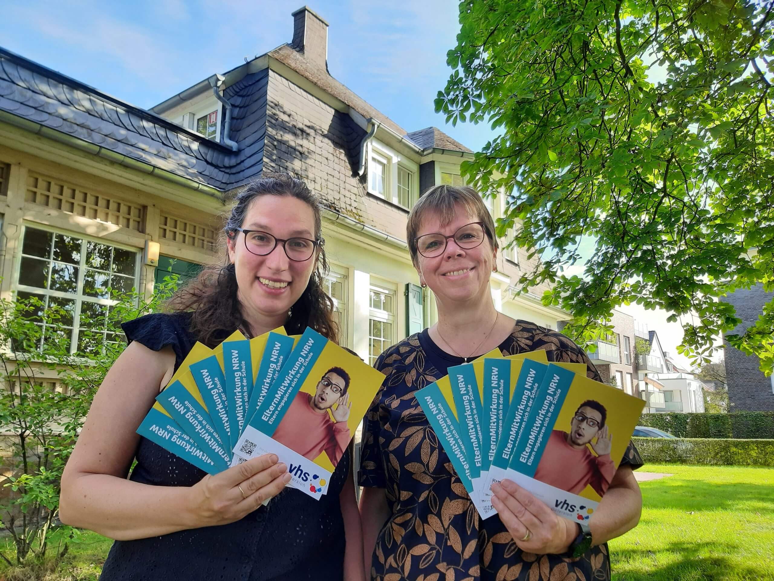 (v.l.) Dr. Mariella Gronenthal (stellv. Leiterin der VHS Gütersloh) und Irmhild Plauschinn (Pädagogische Leiterin der VHS Gütersloh) freuen sich auf viele Teilnehmende beim Projekt „ElternMitWirkung NRW“. Foto: Stadt Gütersloh