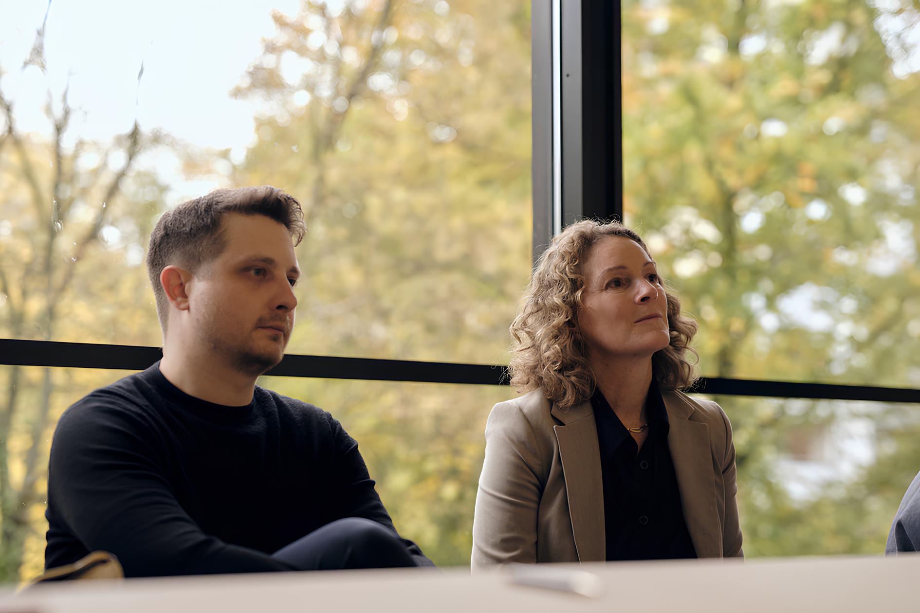 Kurator Benedikt Fahrnschon von der Kunsthalle Bielefeld und HSBI-Professorin Dipl.-Ing. Bettina Georg. (Foto: K. Starodubskij/HSBI)