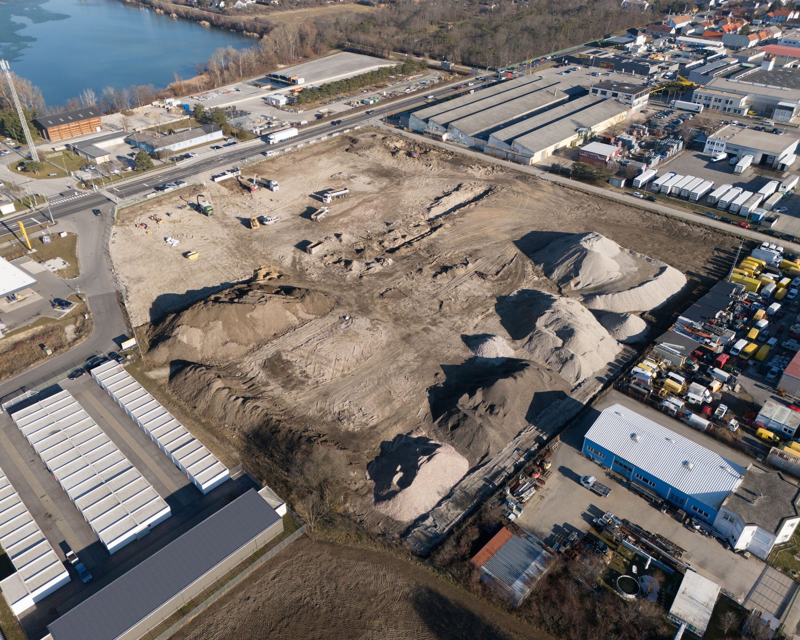 Der Standort liegt im Einzugsgebiet Wiens und gilt durch seine verkehrsgünstige Lage als optimaler Gewerbestandort. Der Rückbau der Bestandsgebäude und die Sanierung sind bereits erfolgt. Der beim Abbruch anfallende Bauschutt wurde recycelt und wird noch direkt vor Ort wiederverwendet. So werden Ressourcen geschont, Transporte minimiert und die Entsorgung reduziert.
