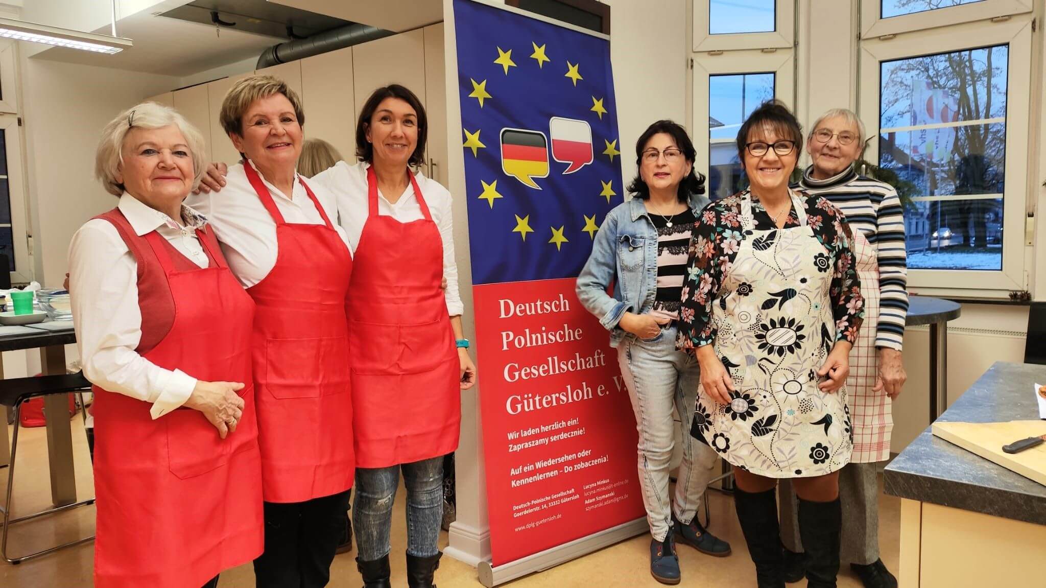 BU: Haben bei dem Weihnachtskochen der Deutsch-Polnischen Gesellschaft Gütersloh in der VHS Gütersloh fleißig geholfen: Stanisława Langwald, Lucyna Minkus (Vorsitzende der Deutsch-Polnischen Gesellschaft), Iwona Vorbohle, Maria Skibowski, Danuta Mandla und Irena Niehaus. Foto: Stadt Gütersloh/VHS.