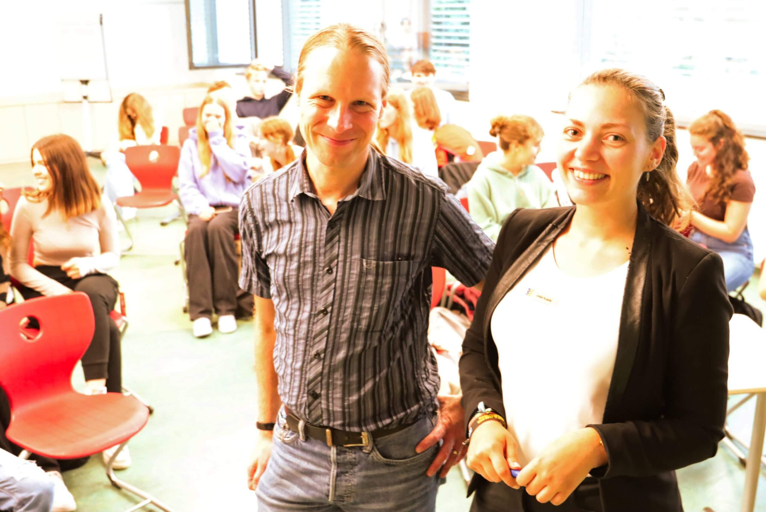 Eleonora Demir und Nancy Nika Rommel (jetzt Klasse 10) berichten über ihren Podcast zum Thema Frauenhaus.