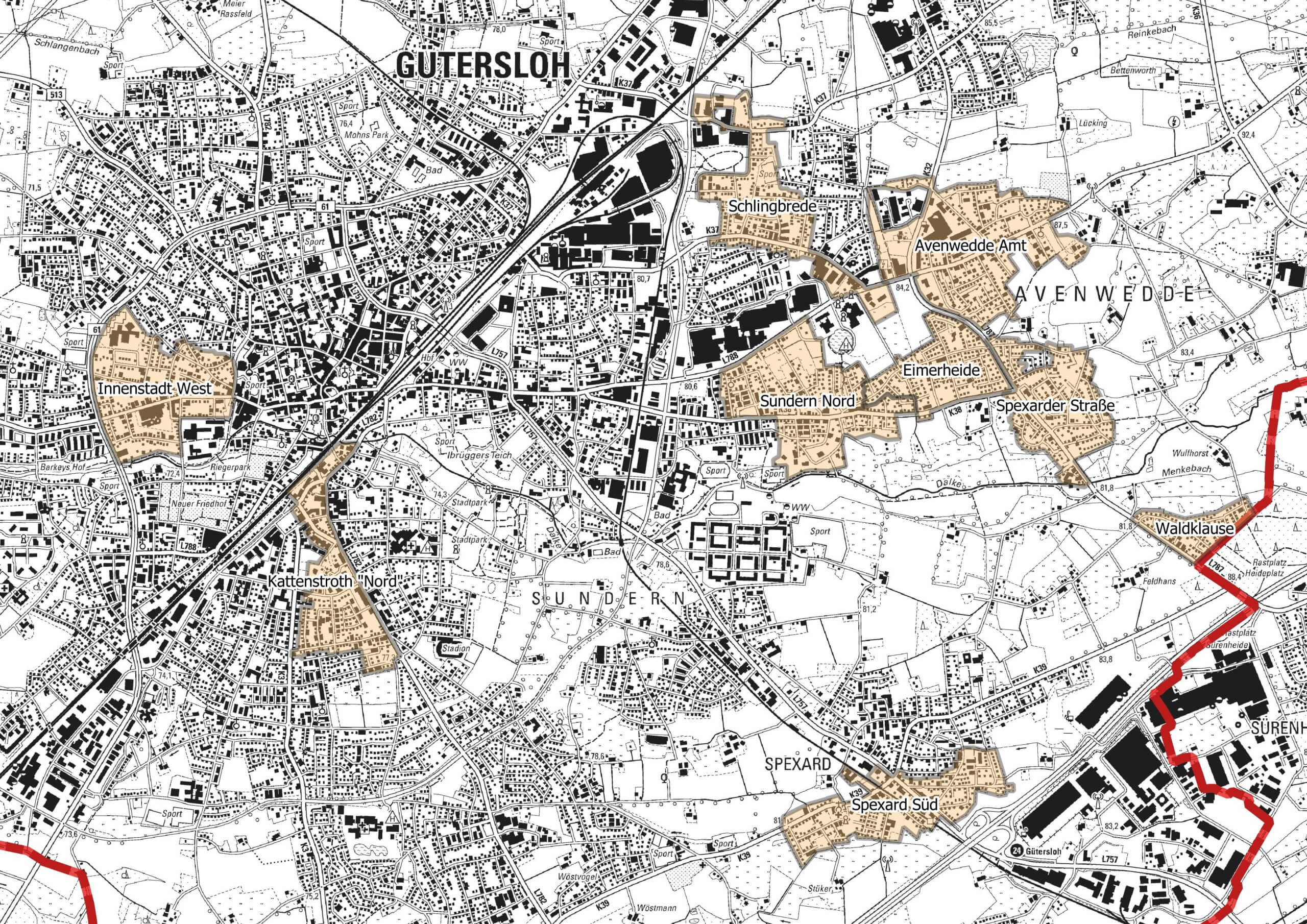 Karte: Netzgesellschaft Gütersloh – In diesen Gebieten haben die Anwohner ab sofort die Chance auf einen Glasfaseranschluss bis ins Haus.