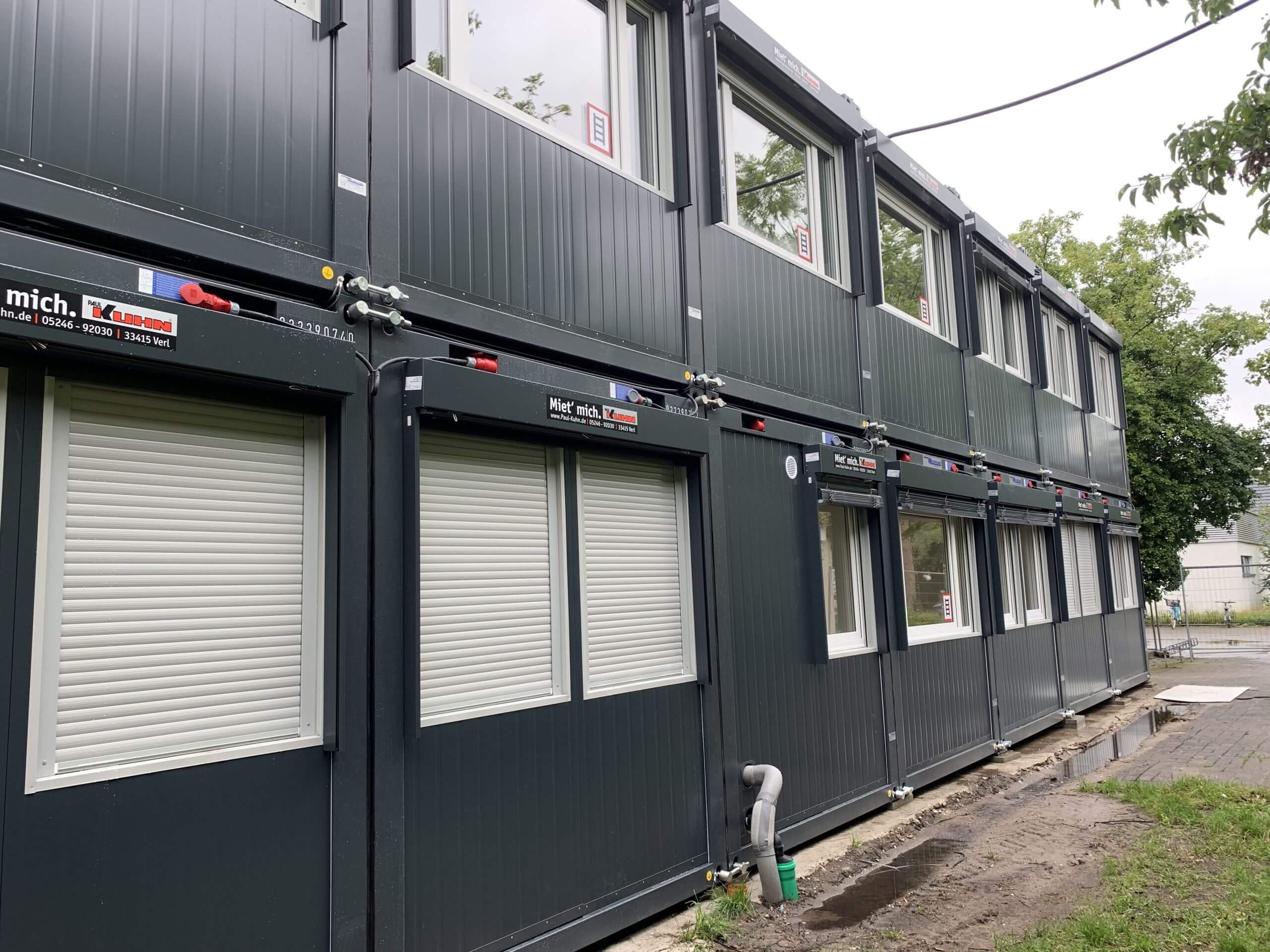 BU: Nagelneue Container stehen der Grundschule Große Heide für den Übergang zur Verfügung. Foto: Stadt Gütersloh.