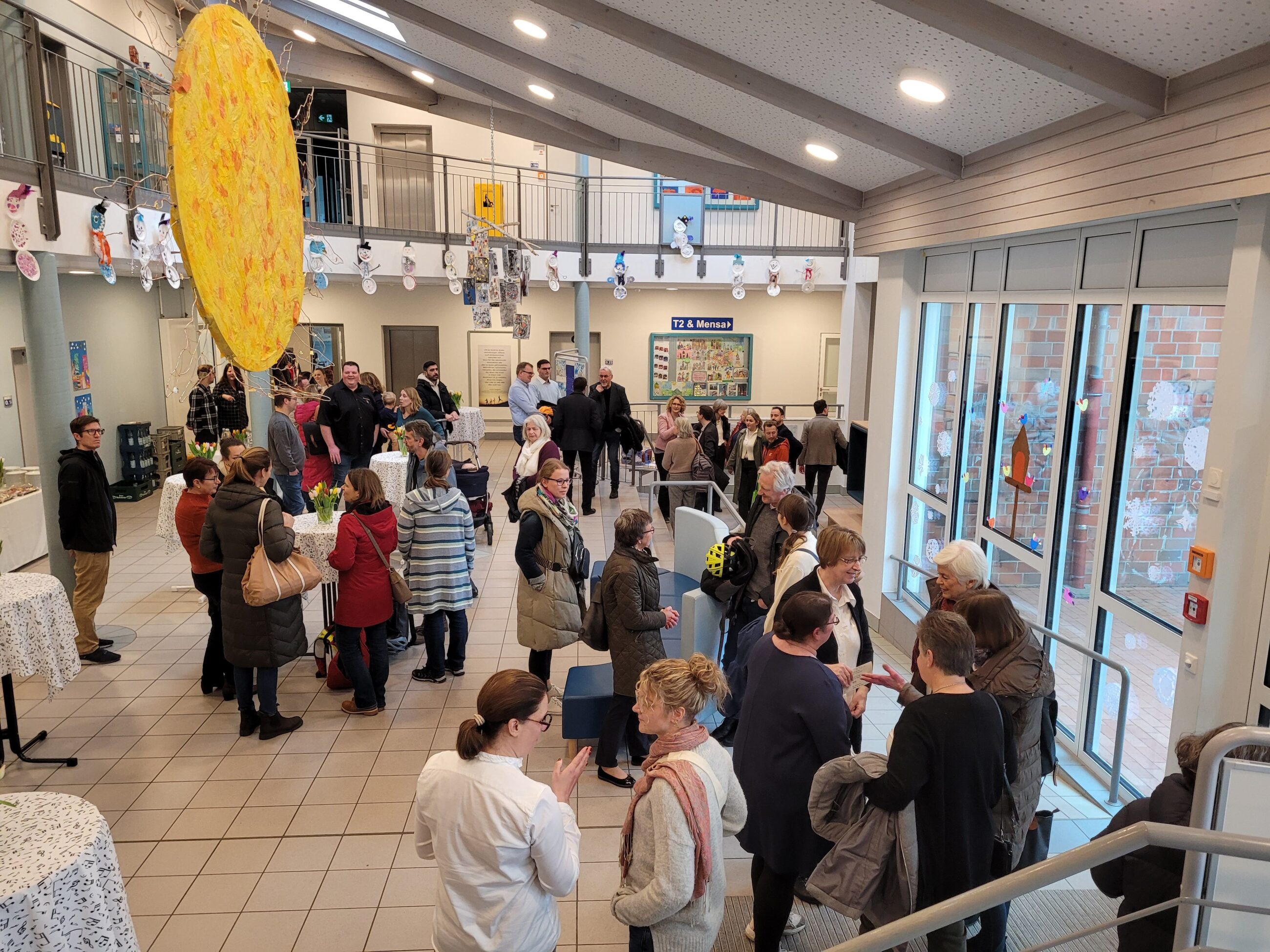 Die Gäste der Einweihungsfeier fanden sich im Foyer der Grundschule Heidewald ein. Foto: Stadt Gütersloh