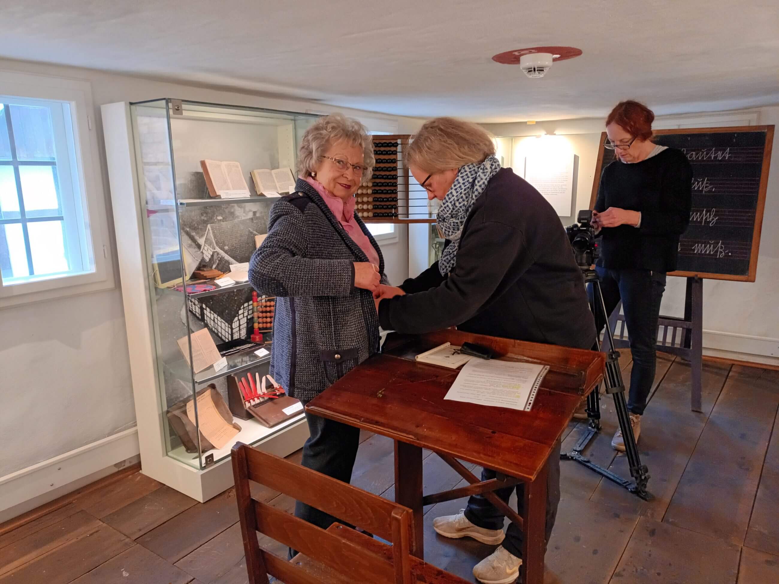 Bild: Stadtführerin Brunhilde Kohls (links) wurde für einen Fernsehbericht über Gütersloher Besonderheiten zur Weihnachtszeit im Stadtmuseum interviewt. © Gordana Janson.
