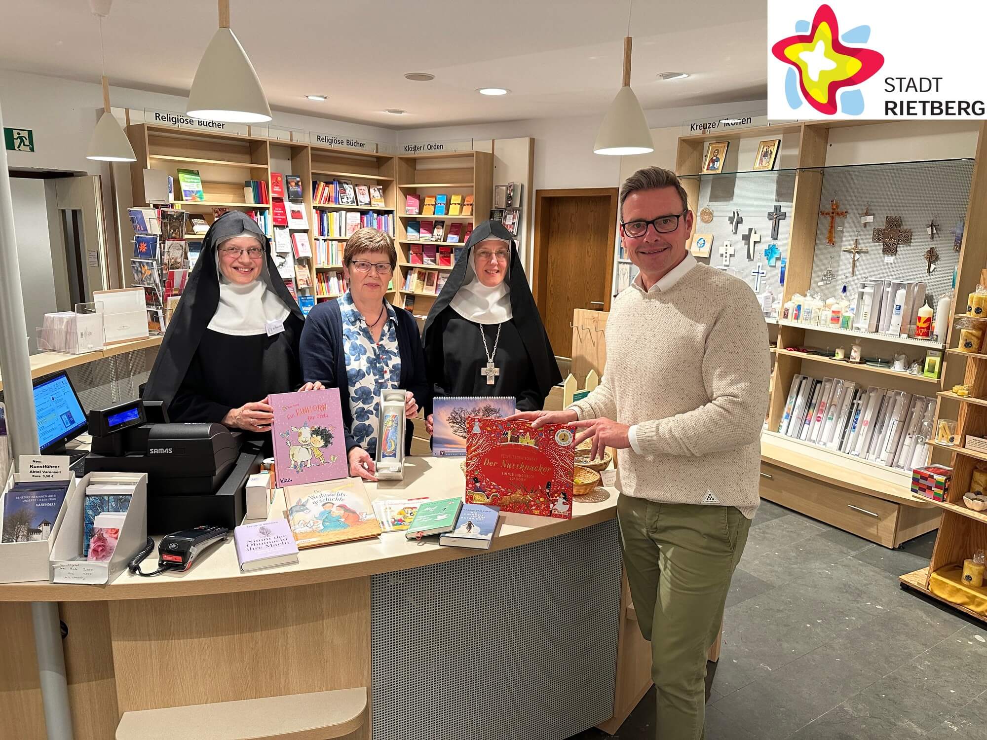 Rietberg. Für die Benediktinerinnen der Abtei in Varensell ist es nicht nur ein Ort, an dem sie sich gerne aufhalten. Es ist auch ein Ort, an dem sie ganz unkompliziert mit Menschen ins Gespräch kommen. Und es ist ein Ort, der ihnen eine sinnstiftende Beschäftigung bietet: die Buch- und Kunsthandlung der Abtei Varensell. Was viele nicht wissen: Über die kleine, aber feine Buchhandlung kann sämtliche Lektüre bestellt werden – auch Schulbücher. Das hat Bürgermeister Andreas Sunder jetzt bei einem Besuch vor Ort erfahren.