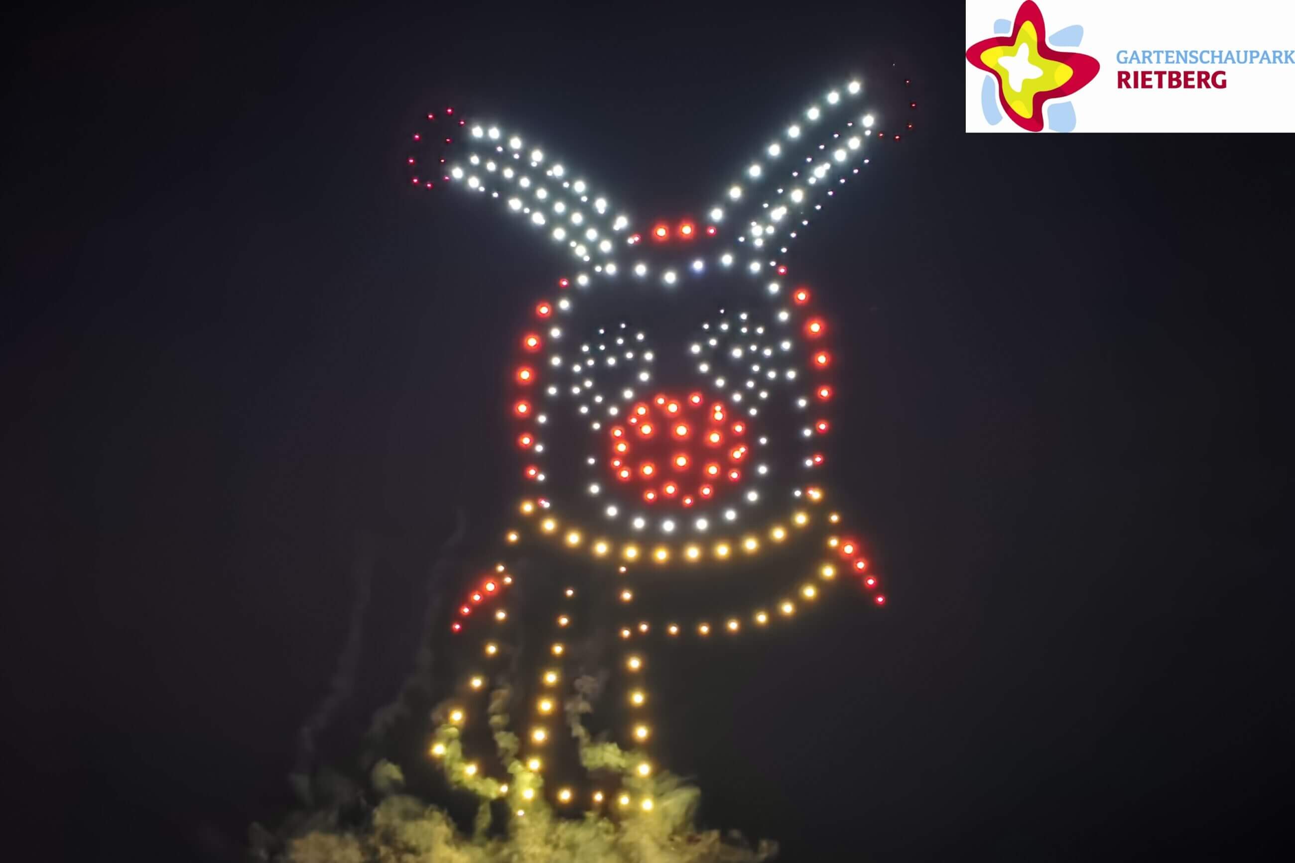 Foto: Beim Himmelsleuchten im September haben die beleuchteten Drohnen Bilder aus dem Gartenschaupark in den Abendhimmel gemalt, unter anderem auch Maskottchen Rieti. 5000 Besucher waren begeistert. Am 28. September findet die spektakuläre Show ihre Fortsetzung.