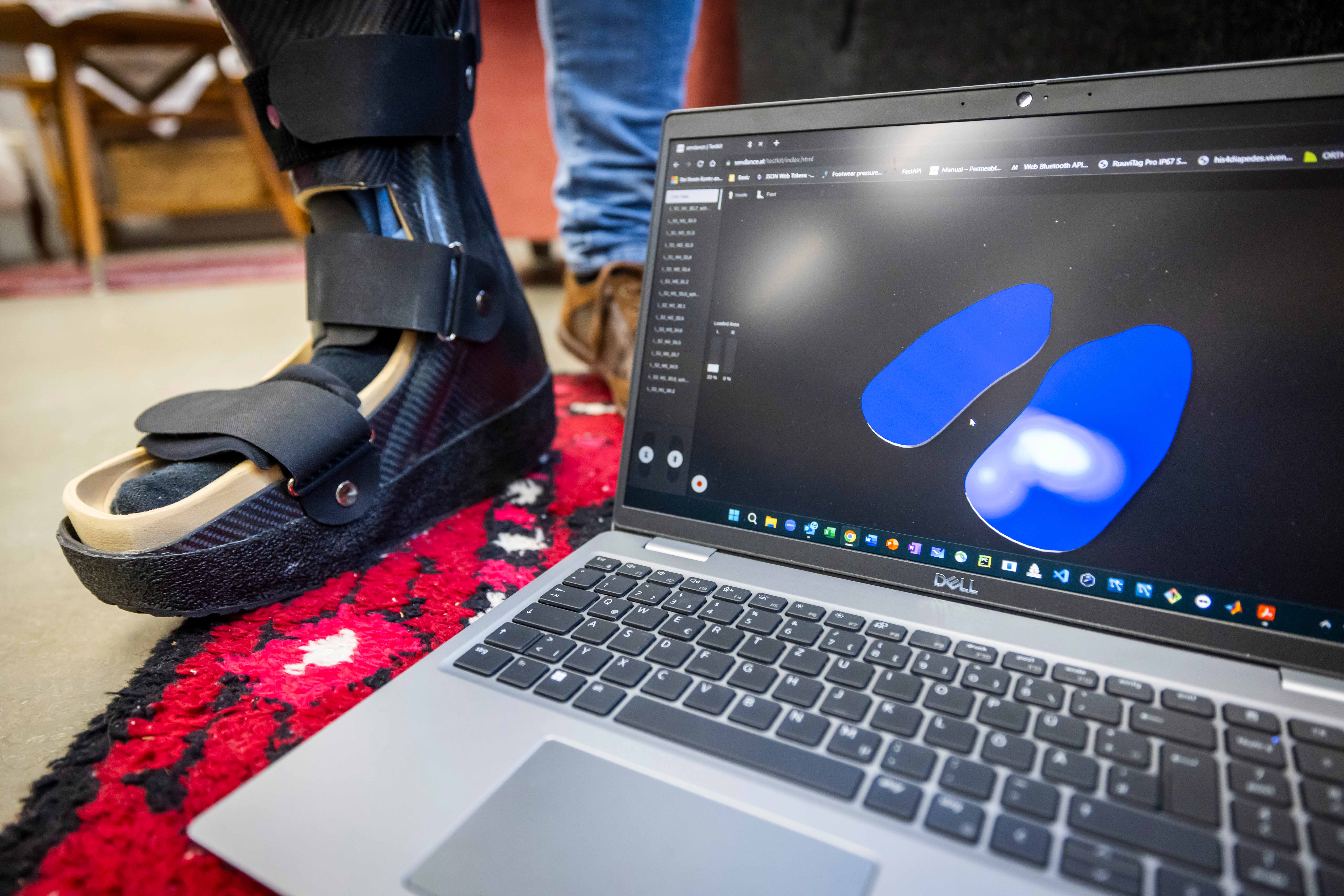 BUZ2: Die „smarte Orthese” erkennt unter anderem, ob die Orthese drückt oder ob sich der Druck des Körpergewichts gut verteilt. (Foto: S. Jonek/HSBI).