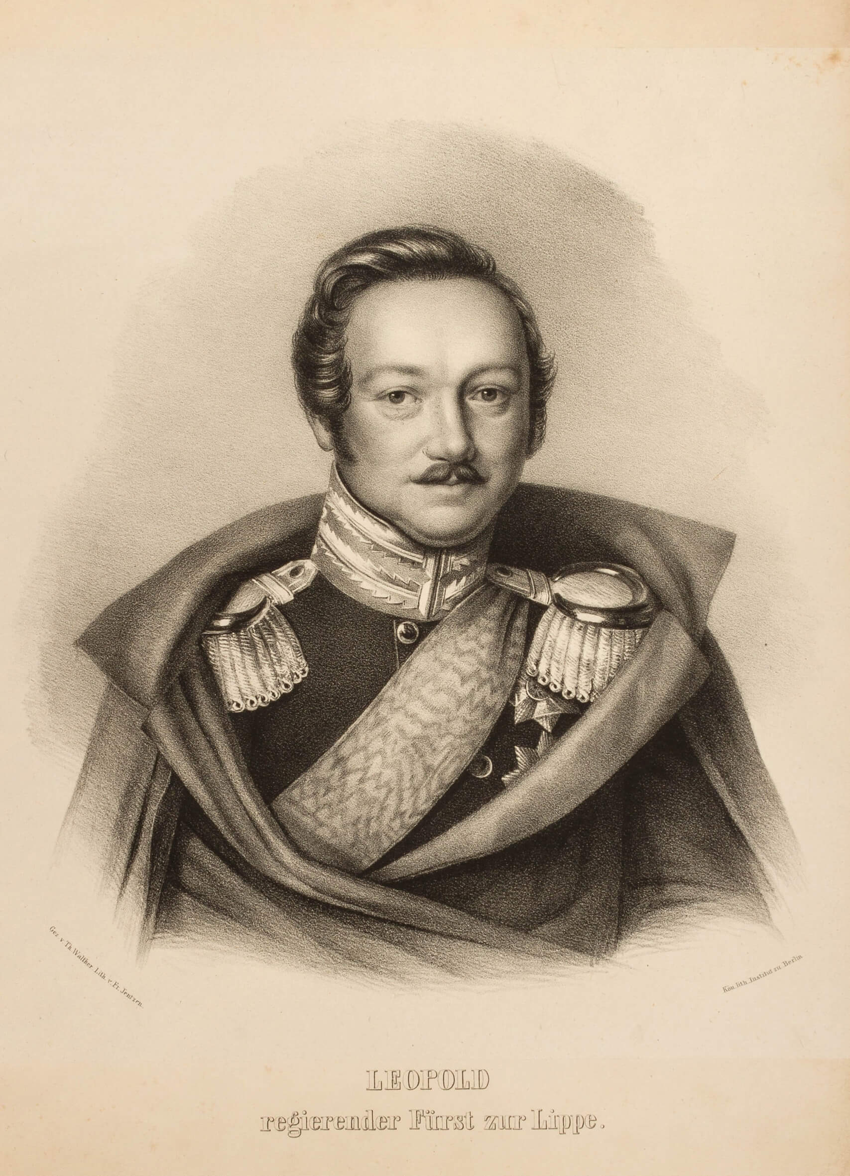 Paul Alexander Leopold II., Lithografie von Friedrich Jentzen nach einer Zeichnung von Th. Walther / Foto: Lippischen Landesmuseum