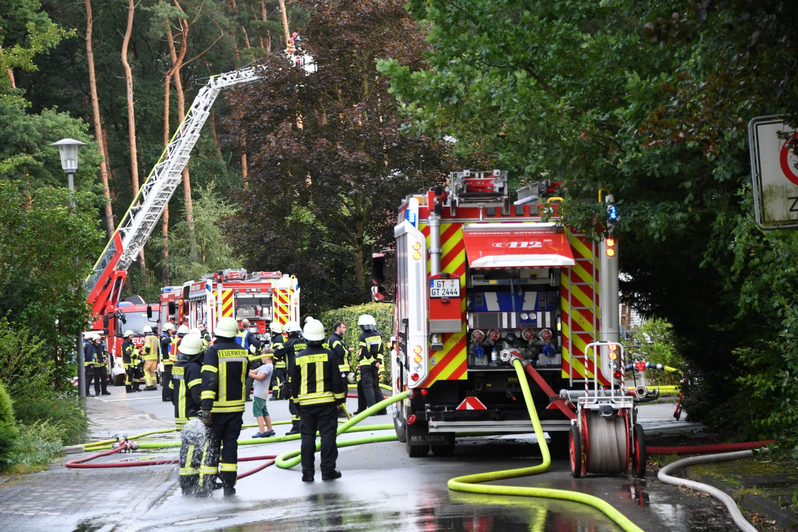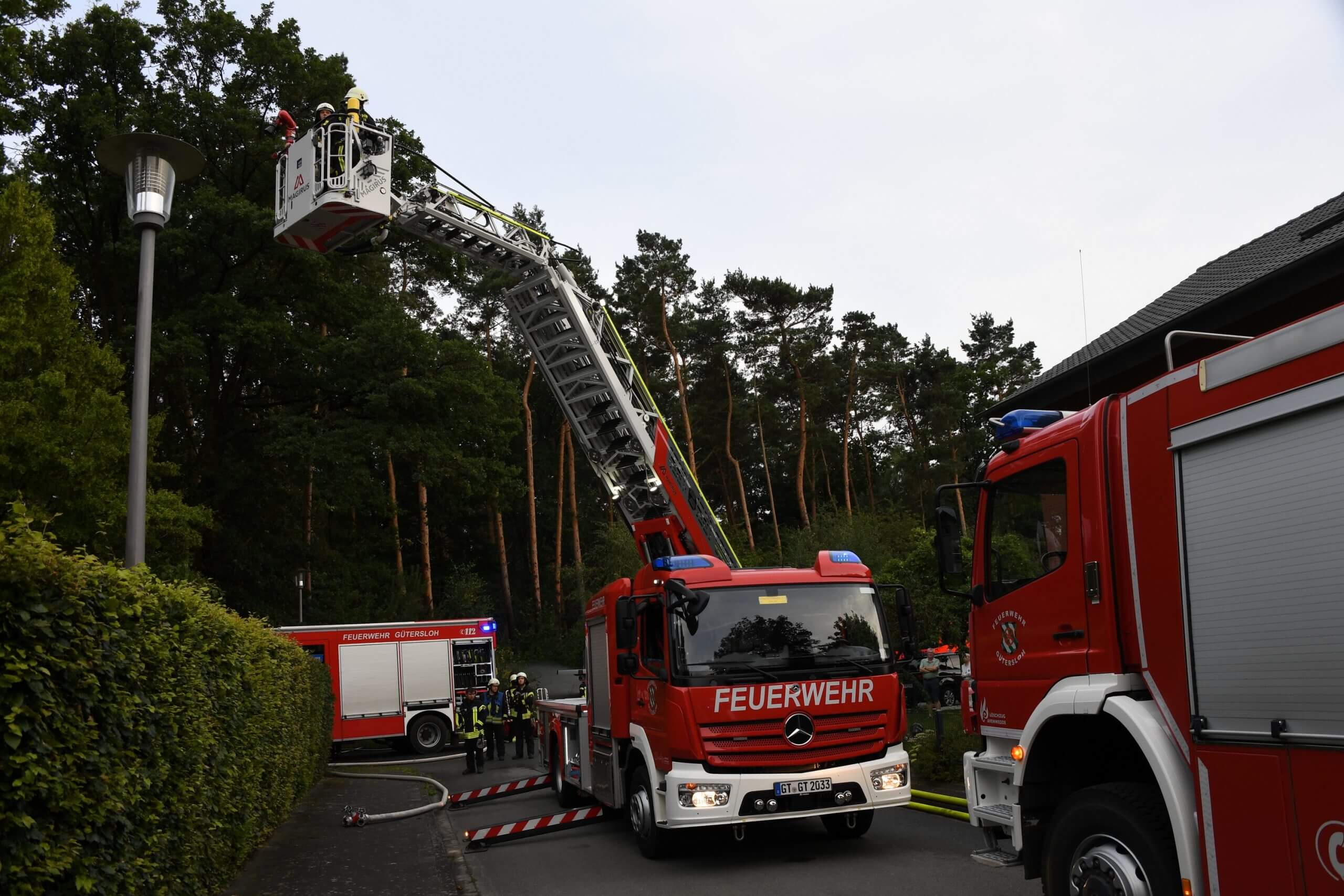 Während das alles weitestgehend gelang, kümmerten sich die Feuerwehrleute zeitgleich auch um zwei Dachstuhlbrände, die im Zuge des Waldbrands ebenfalls entfacht worden waren. In der Edith-Stein-Schule wurden die „evakuierten Hausbewohner“, gemimt von rund zwei Dutzend Mitgliedern der Jugendfeuerwehr, betreut. Und dann hatte der Funkenflug auf der anderen Seite der Siedlung auch noch für weitere Feuer gesorgt. Es war also eine Menge zu tun, zu löschen und durchzuführen. „Das alles ist eine große Herausforderung gewesen“, so Wolfgang Pollmeier, Abteilungsleiter Einsatzorganisation der Berufsfeuerwehr Gütersloh. „Auch die Überlegungen, solch eine Übung zu gestalten, sind aufwendig und verlangen uns immer viel ab, aber der Testeinsatz ist letztlich erwartungsgemäß verlaufen“, so seine Bilanz. „Wir werden die einzelnen Punkte der Übung jetzt noch analysieren und auswerten. So kurz nach der Übung können wir aber schon sagen, dass es auf allen Ebenen, bei der Leitung, Führung und Ausführung, aufschlussreiche Erkenntnisse für uns gegeben hat“, erklärt Pollmeier. Um das genau nachzuhalten, sind während des Übungseinsatzes mit einer Drohne Videoaufnahmen gemacht worden.