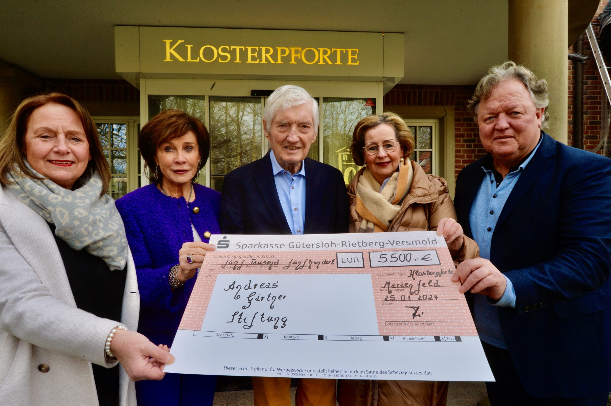 Scheckübergabe der Familie Frie an die Andreas Gärtner-Stiftung (von links): Hilla Glasenapp, Brigitte und Hermann Gärtner, Beate Steinhausen und Reinhold Frie.
