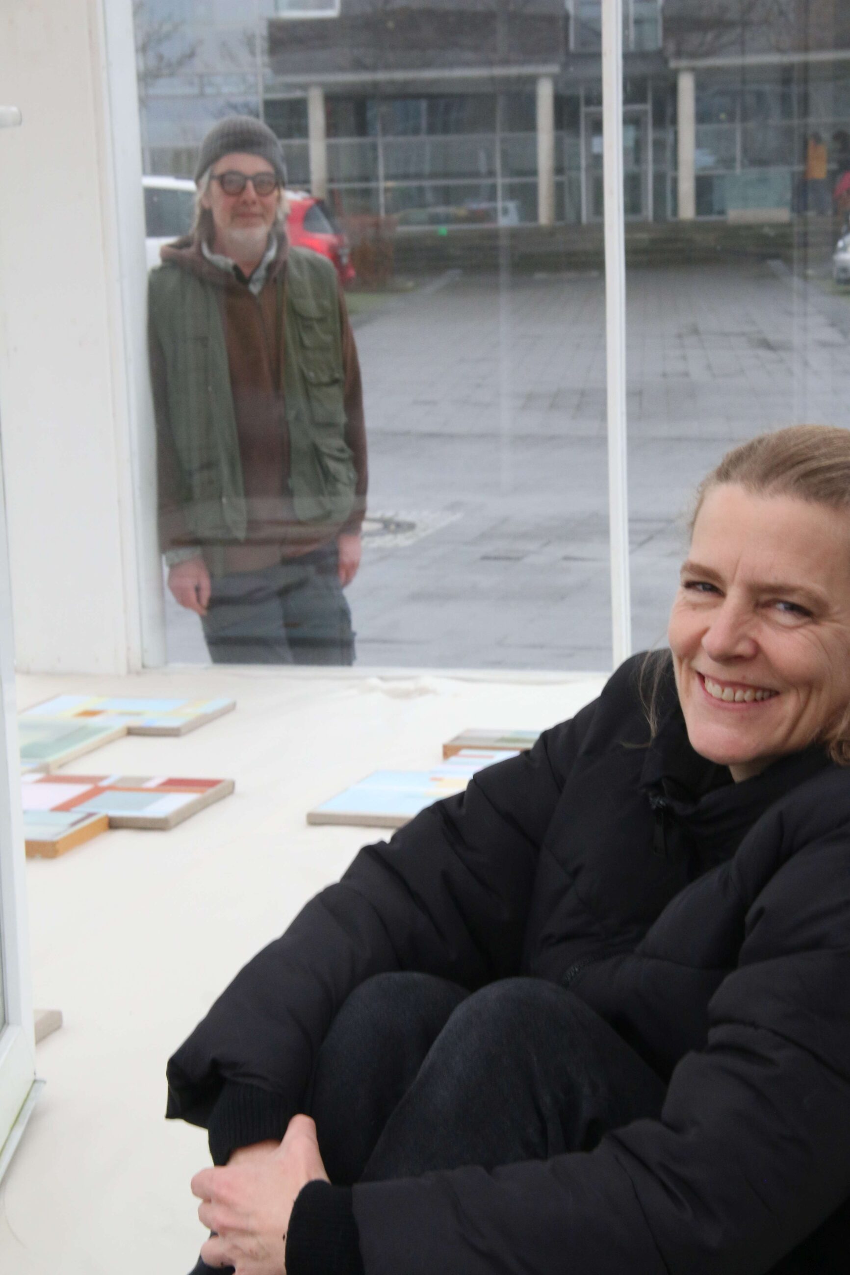 Melanie Körkemeiers Malerei knüpft, so die Künstlerin, an den Ansatz an, meist rechtwinklige Flächen und Farben in einen Dialog zu bringen. „Es geht um kompositorische Fragestellungen und den Versuch, mit größtmöglicher Reduktion eine bildnerische Spannung zu erzeugen. Nicht wirklich minimalistisch probiere ich doch, mit einem sehr zurückgenommenen malerische Vokabular auszukommen.“ Die Arbeiten sind klein- bis mittelformatig, mit Acryl- und/oder Ölfarbe auf Leinwand oder Holz gemalt. Weil der Pavillon rundum verglast ist, präsentiert die Künstlerin ihre Arbeiten, anders als sonst, installativ, in mosaikförmiger Anordnung als Bodenarbeit.
