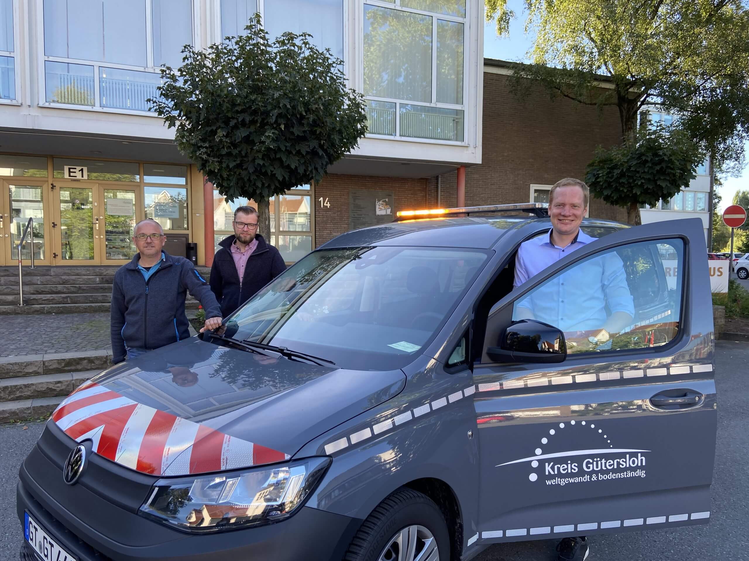 Freuen sich über das neue Dienstfahrzeug für Umweltalarme (v.l.) Ulrich Ruhe (Untere Wasserbehörde), Thorsten Junker (Sachgebietsleiter Untere Wasserbehörde) und Philip Dreier (Untere Wasserbehörde)