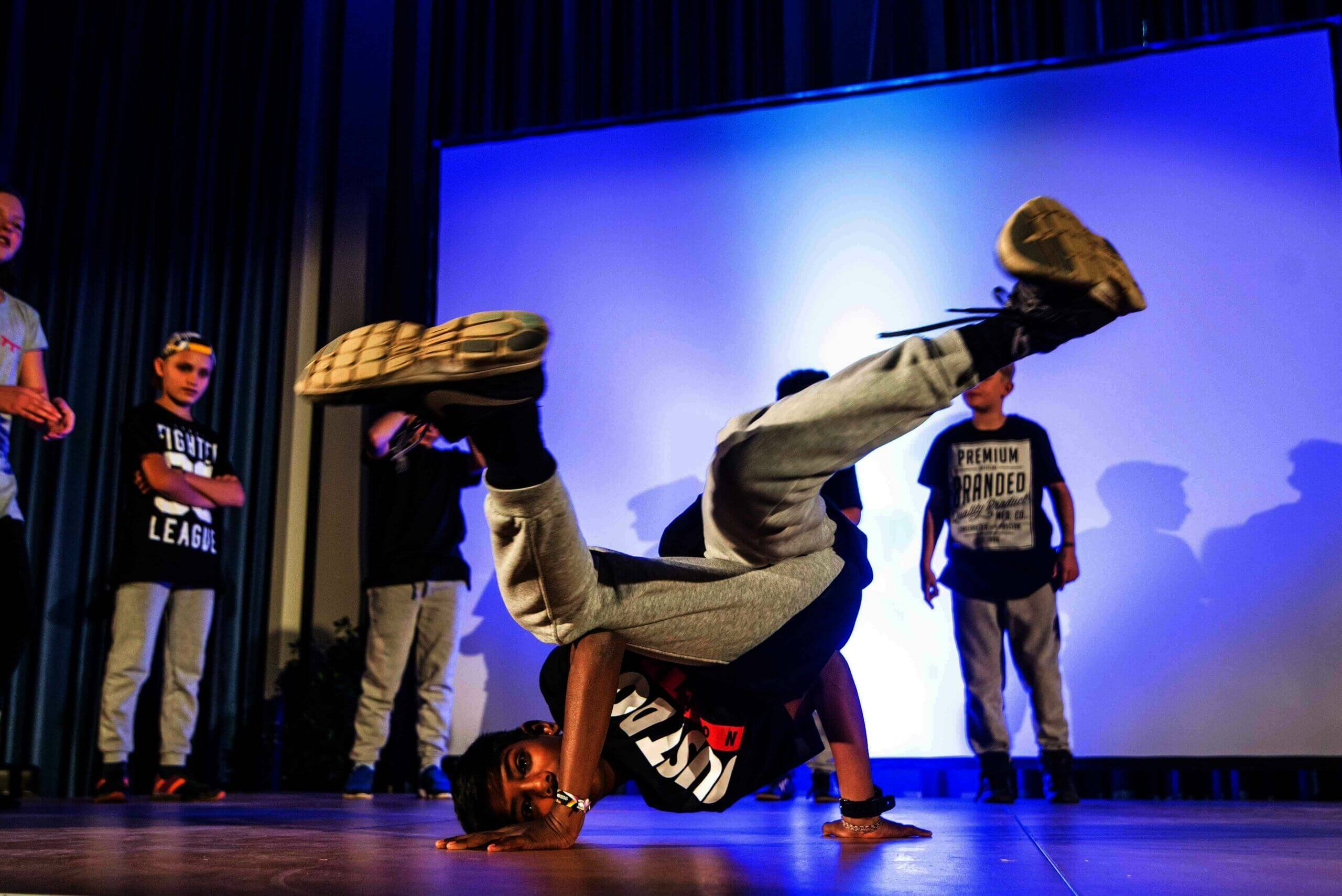 BU 1: Der „Kulturrucksack“ bietet Jungen und Mädchen die Möglichkeit in einem Workshop den „Breakdance“ zu lernen. (Foto: Paul Olfermann).