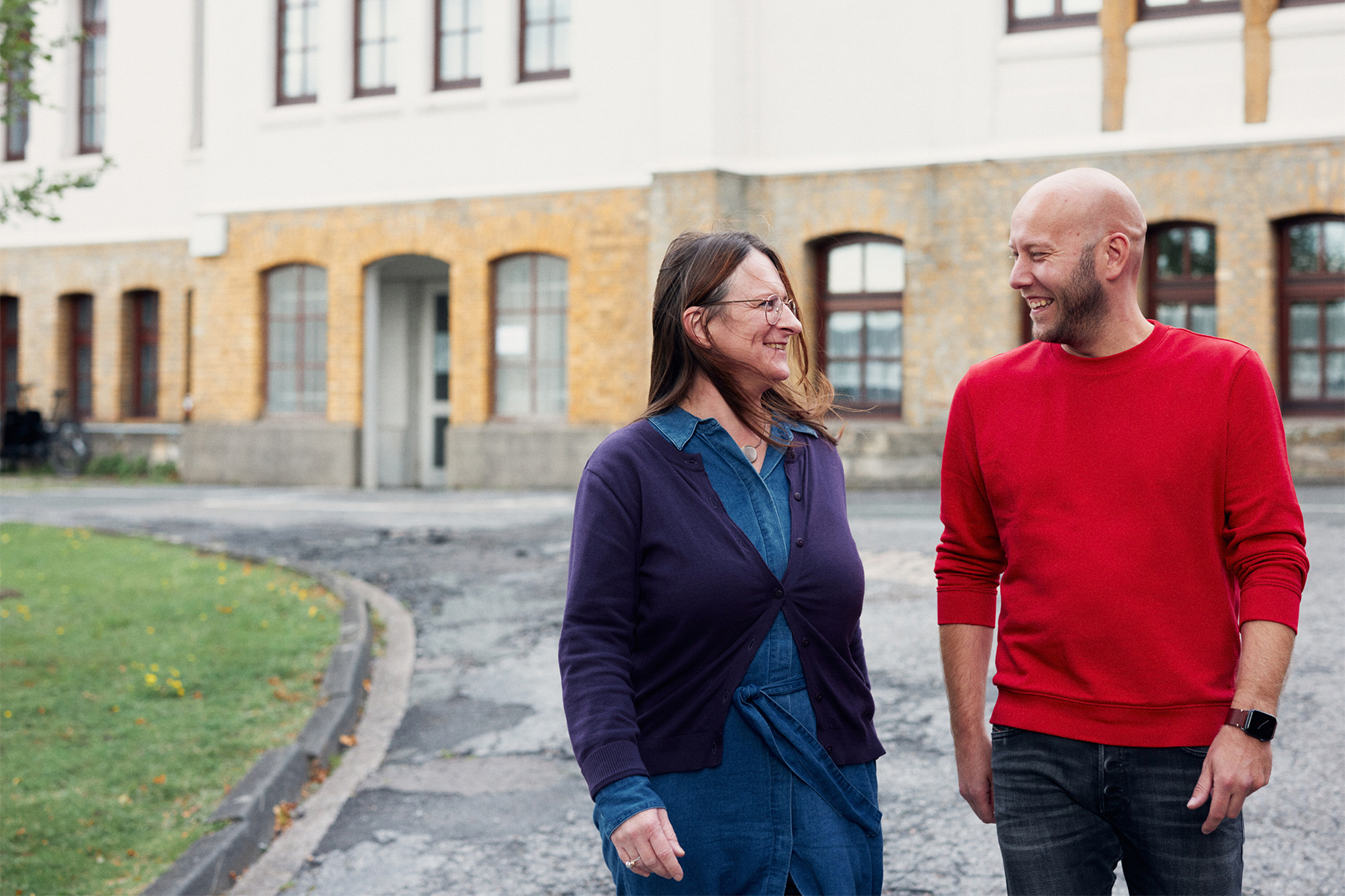 Die Verzahnung mit der Praxis ist ein wesentliches Element des Zertifikatsangebots, nicht nur auf der Ebene der Dozentinnen und Dozenten. Patrizia Raschper ist zum Ortstermin in die Pflegeschule in Bethel gekommen, Oliver Schreiner führt durch das altehrwürdige Gebäude, das gleichwohl mit neuesten digitalen Features und dem frisch eingerichteten Skills Lab ausgestattet ist. Schnell stecken die beiden mitten im Fachgespräch – über den aktuellen Personalbedarf und die Fallstricke des Digitalpakts. „Der Kontakt und Austausch gerade mit Absolventinnen und Absolventen ist für die Weiterentwicklung unseres Angebots wichtig“, sagt Raschper. Ebenso wie die akademische Expertise der HSBI, die stets den aktuellen Stand der Wissenschaft in der Weiterbildung sicherstellt. „Hier arbeiten wir fachbereichsübergreifend zusammen, etwa mit dem Fachbereich Wirtschaft“, berichtet Raschper. Und weiter: „Es handelt sich um eine akademische Weiterbildung, durch die wissenschaftliche Erkenntnisse in die Praxis getragen werden, wir als Hochschule aber eben auch spannende Rückmeldung bekommen.“ So profitieren beide Seiten.