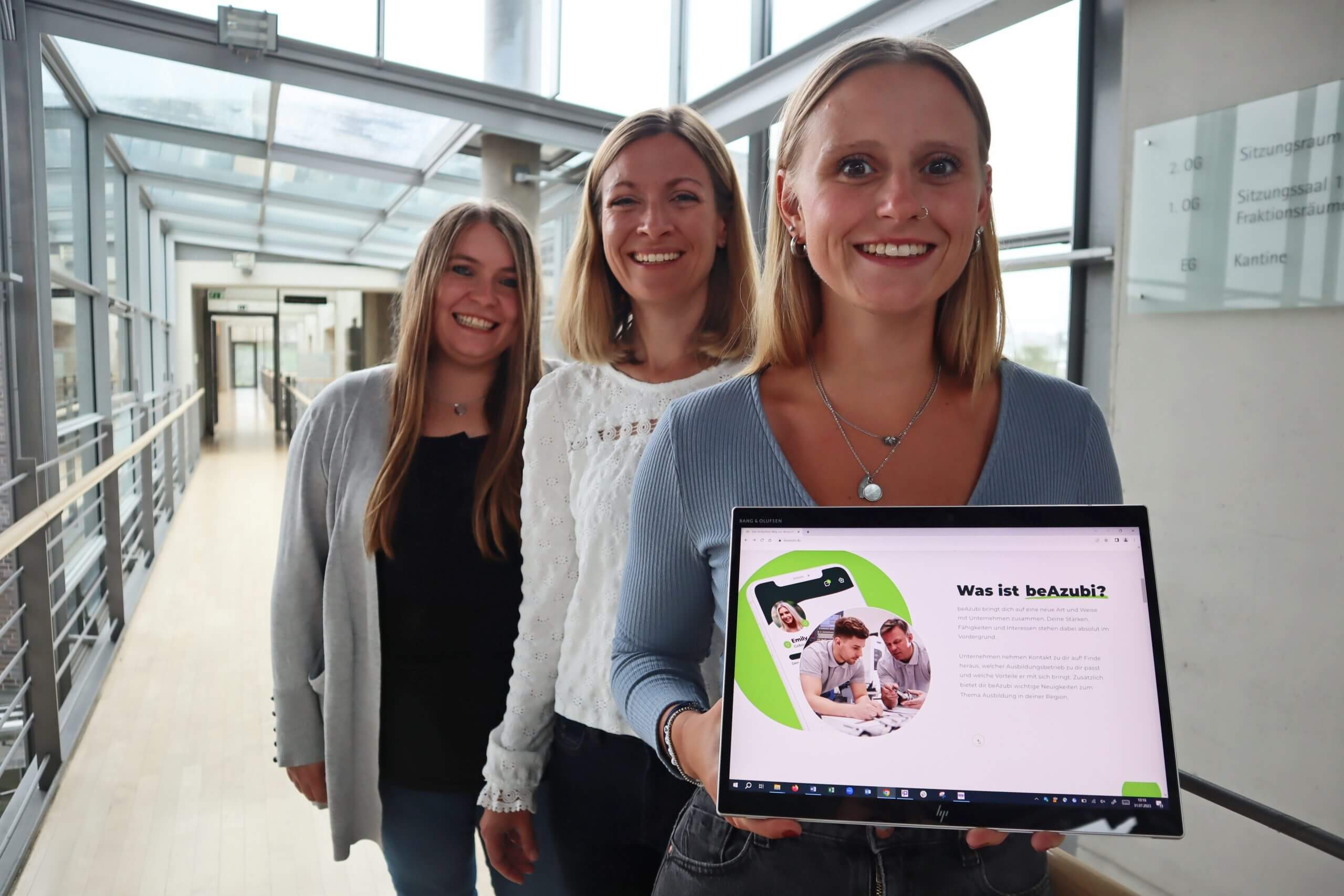 (v.l.) Bianca Geiser, Kristina Dietzschold und Alina Kosmella von der Kommunalen Koordinierungsstelle Übergang Schule-Beruf des Kreises betreuen das Portal beAzubi. Foto: Kreis Gütersloh