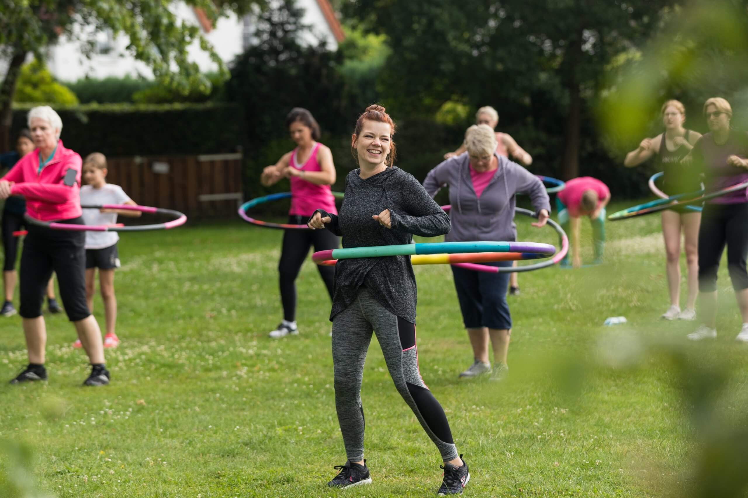 BU Hula: Im kostenlosen Angebot von „Sport im Park“ finden sich auch Trendsportarten wie „Hula-Fitness“. Foto: Maximilian Gaisendrees