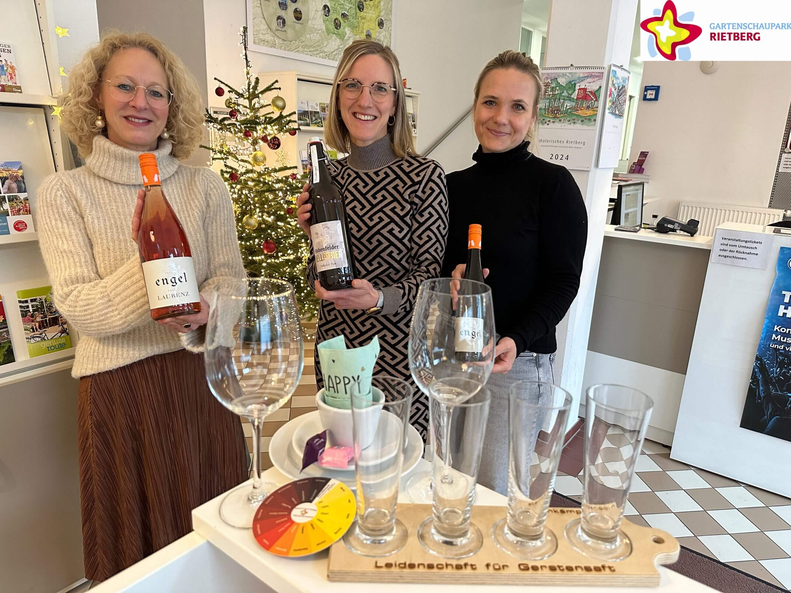 Foto: Die Mitarbeiterinnen der Touristikinformation, Elke Milsch, Elke Glasemacher und Julia Kreuzer (von links), haben wieder viele spannende und leckere lukullische Touren für 2024 vorbereitet. Die Führungen sind ab sofort buchbar. Foto: Stadt Rietberg.