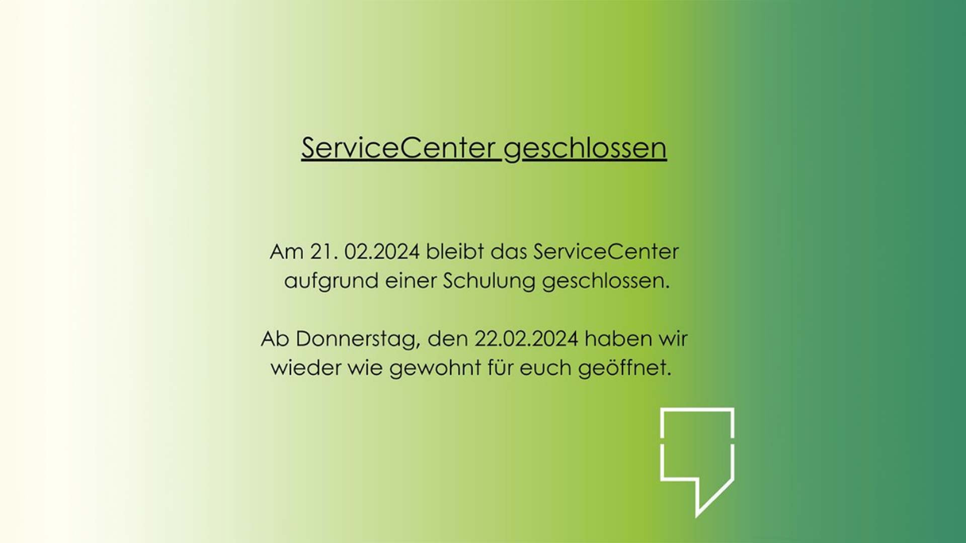 Am Mittwoch, den 21. Februar bleibt das ServiceCenter geschlossen