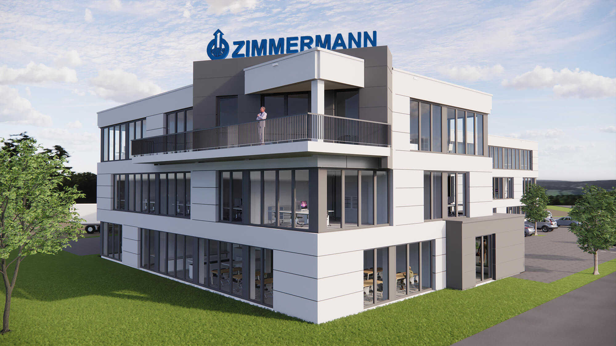 „Das kontinuierliche Wachstum der Zimmermann-Gruppe in den vergangenen zehn Jahren machte einen Neubau unausweichlich“, begründet David Zimmermann das Bauvorhaben. Das neue Verwaltungsgebäude wird eine Fläche von insgesamt 2.700 Quadratmetern haben. Verteilt auf drei Etagen entstehen insgesamt 94 Büro-Arbeitsplätze. Außerdem werden im 400 Quadratmeter großen Prüflabor bis zu zehn Kolleginnen und Kollegen mit neuster Technik arbeiten. Zusätzlich sind fünf neue Besprechungsräume und eine Kantine geplant. Diese bietet Platz für 50 Personen. Das alte Objekt wird nach dem Umzug abgerissen.