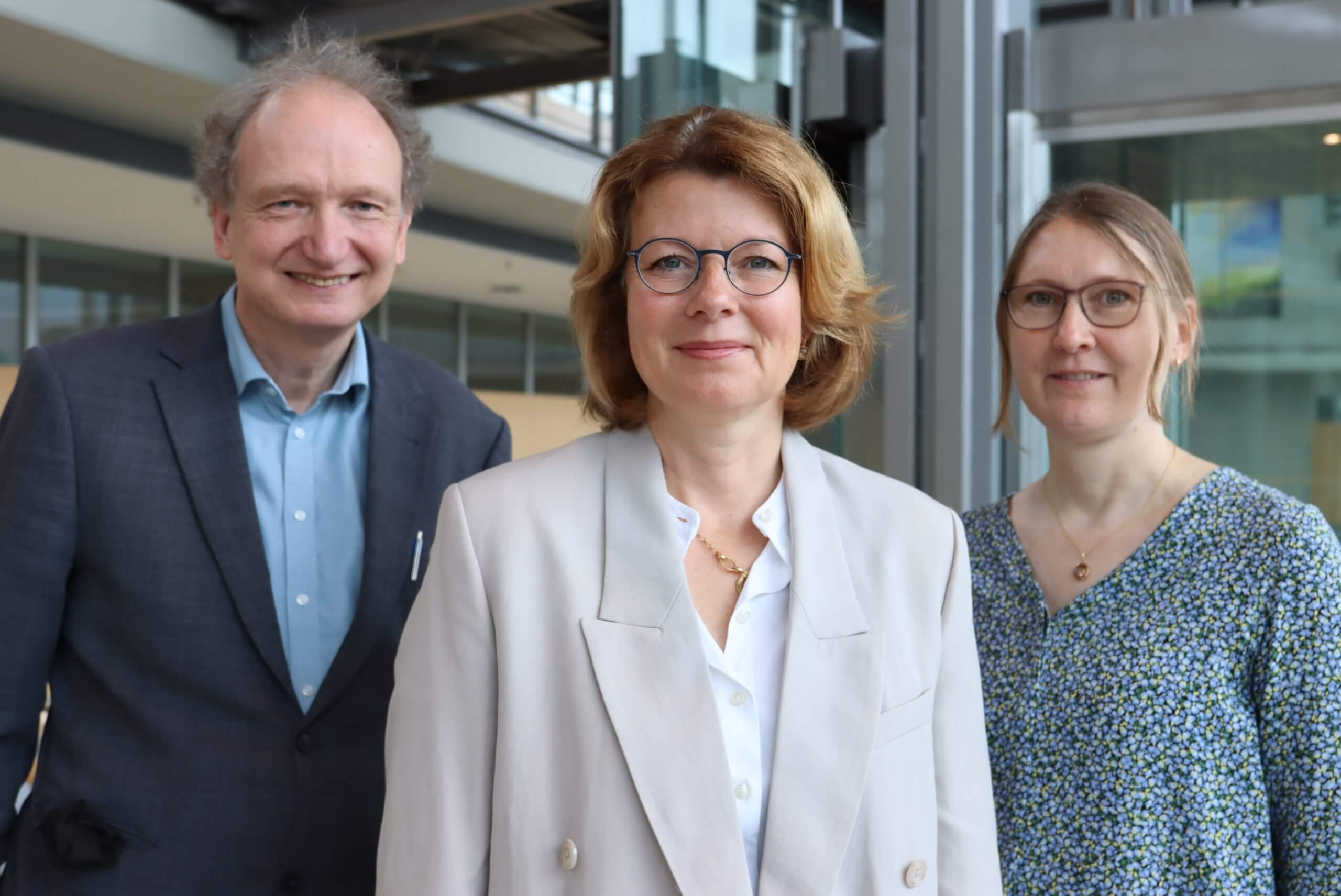 BU1 : Beim Auftakt zum Sozial-Oscar werben (v.l.) Dr. Ulrich Kemper (LWL-Klinik), die Kreisdirektorin Susanne Koch und Schirmherrin Katja Soehnle-Miele und um Positivbeispiele in der beruflichen Integration: Wer weiß von Bespielen des Gelingens und schlägt sie vor?