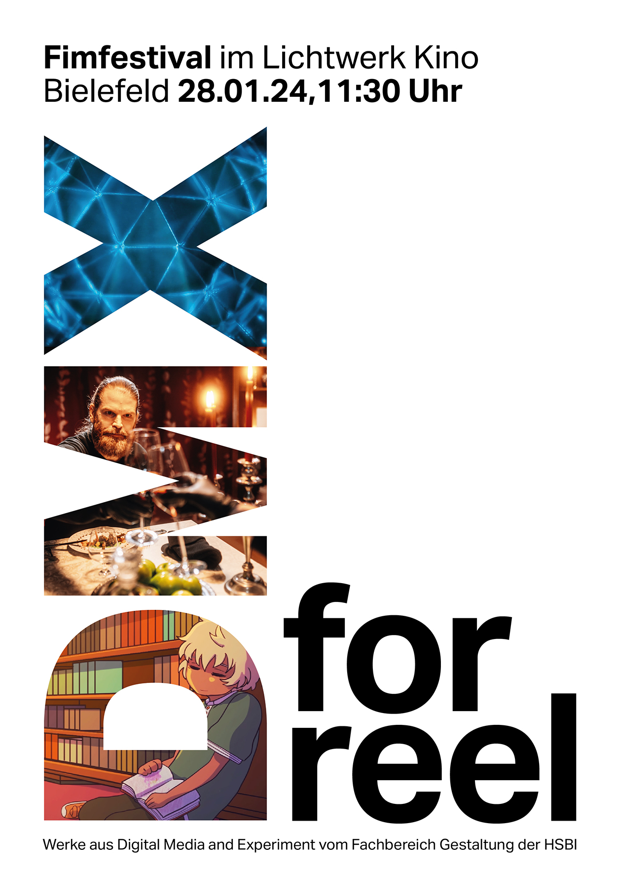 Bielefeld (hsbi). Am Sonntag, 28. Januar 2024, lädt die Studienrichtung „Digital Media and Experiment“ (DMX) des Fachbereichs Gestaltung der Hochschule Bielefeld (HSBI) zum 1. Filmfestival DMX FOR REEL in das Lichtwerk Kino im Ravensberger Park (Ravensberger Park 7, 33607 Bielefeld) ein.