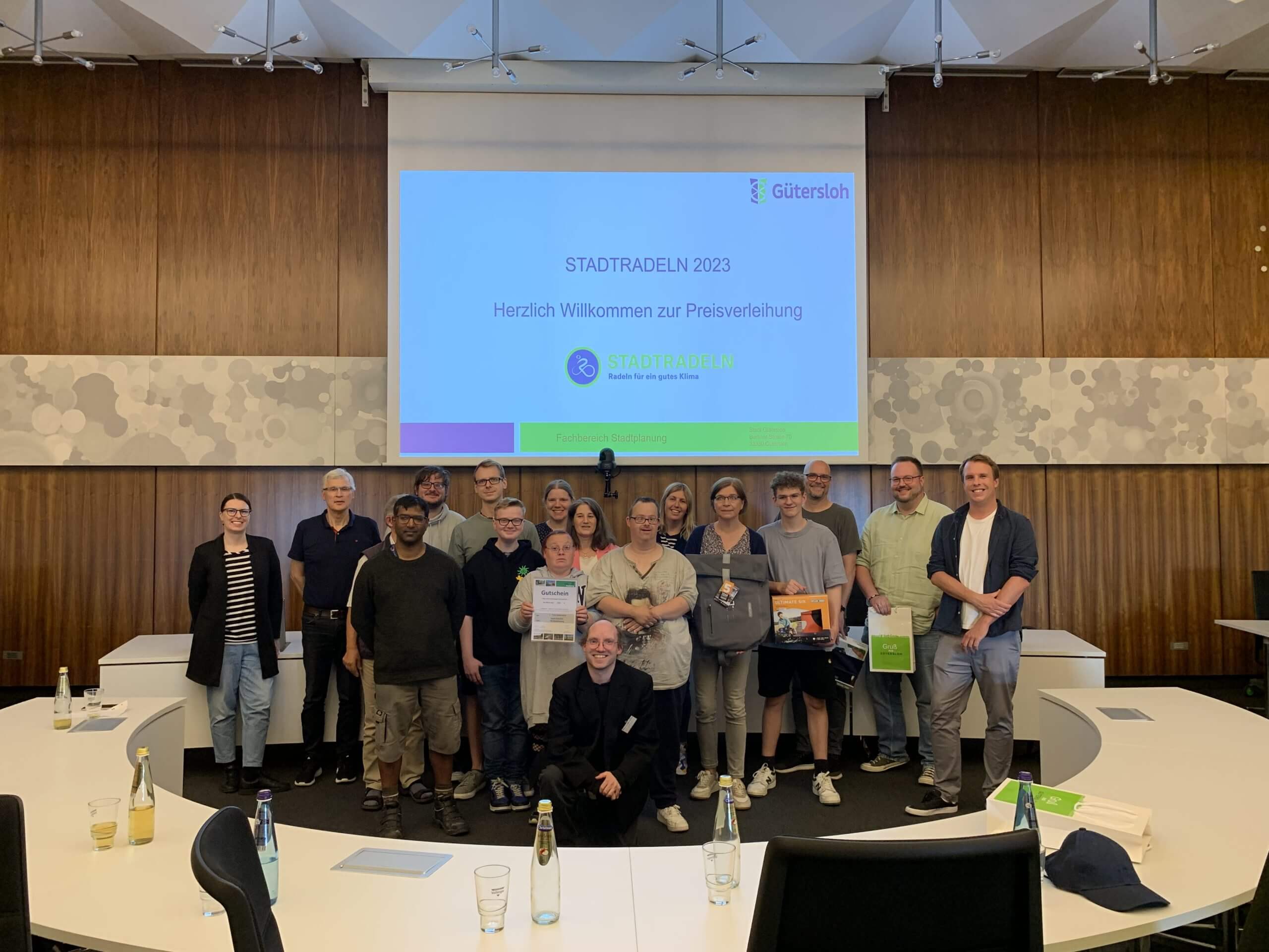 „Ich freue mich sehr, dass Sie alle mit Ihrer Teilnahme am diesjährigen ‚Stadtradeln‘ dazu beigetragen haben, unsere bisherigen Rekorde zu brechen“, begrüßte Nina Herrling die anwesenden Gewinnerinnen und Gewinner, die zuvor per Losverfahren ermittelt wurden. Der erste Platz und damit der Hauptgewinn – eine mehrtägige Radreise auf dem EmsRadweg – ging an das Team „Lebenshilfe“ mit insgesamt 573 geradelten Kilometern. Platz zwei belegte Marco Bertelmann vom Team „Kfd Her-Jesu-Avenwedde“ mit 364 zurückgelegten Kilometern. Sein Gewinn: eine Fahrradtasche von Ortlieb, Modell „Twin City“. Antje Bordel-Soleimankhani nahm stellvertretend für ihr „Team 7 der Janusz-Korczak-Gesamtschule“ den dritten Preis entgegen: einen Fahrradrucksack von Ortlieb. Platz vier erhielt eine Lenkertasche von Ortlieb, für die Plätze fünf bis sieben gab es Gutscheine der Gütersloher Fahrradhändler Fulland und Linnenkamp.