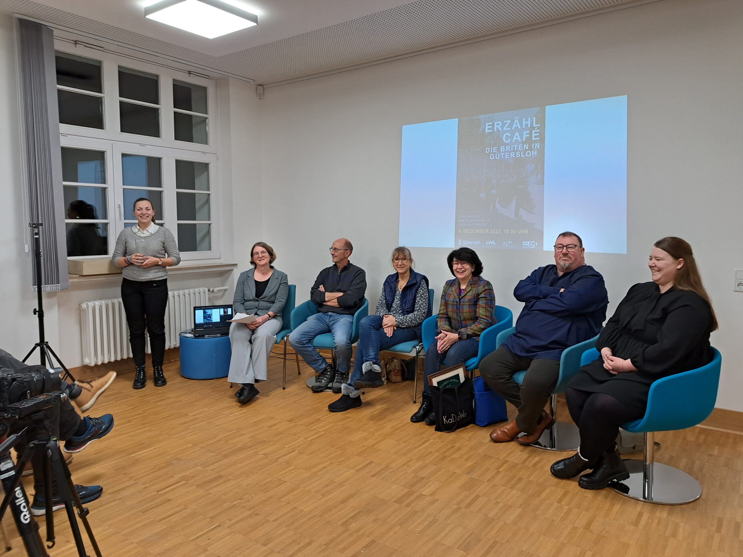 Gütersloh (gpr). Das letzte Erzählcafé des gerade vergangenen Jahres mit dem Titel „Briten in Gütersloh“ hätte ein mehrteiliges werden können. Die rund 40 Teilnehmenden hatten viel Gesprächsstoff für den Dezemberabend im Stadtarchiv mitgebracht. Der städtische Fachbereich Kultur lud zusammen mit dem Stadtarchiv zur 11. Ausgabe der beliebten Reihe ein.