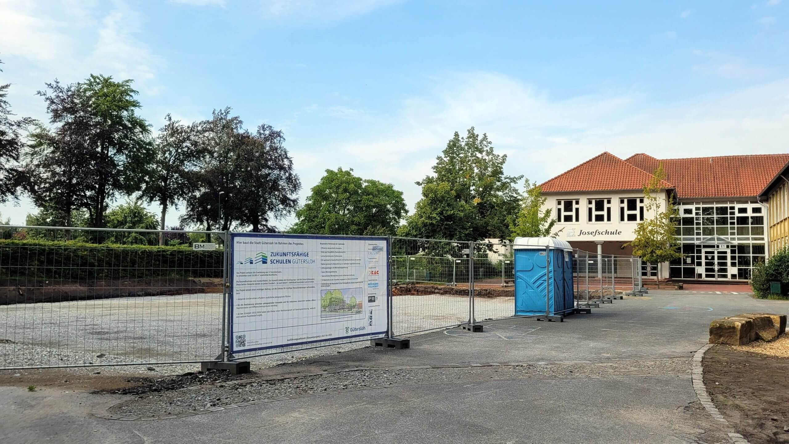 Für die Baustelle an der Blücherschule werden in den nächsten Tagen die Ergebnisse des Bodengutachters erwartet. Dann kann der Oberboden abgefahren und die Baugrube errichtet werden. An der Josefschule und an der Grundschule Sundern sind schon vorbereitende Maßnahmen gelaufen und die Grundleitungen können verlegt werden. Und auch an der Paul-Gerhardt-Schule ist das Baufeld freigeräumt und die Baustelleneinrichtung erfolgt. Für die Erweiterungsbauten der Grundschulen Kattenstroth und Pavenstädt wurden die Flächen durch Abrissarbeiten freigeräumt. Und die Grundschule Große Heide hat ein Provisorium erhalten, das bis zur Fertigstellung der Gesamtbaumaßnahme die Schulverwaltung und Teile der Offenen Ganztagsschule beherbergen wird.
