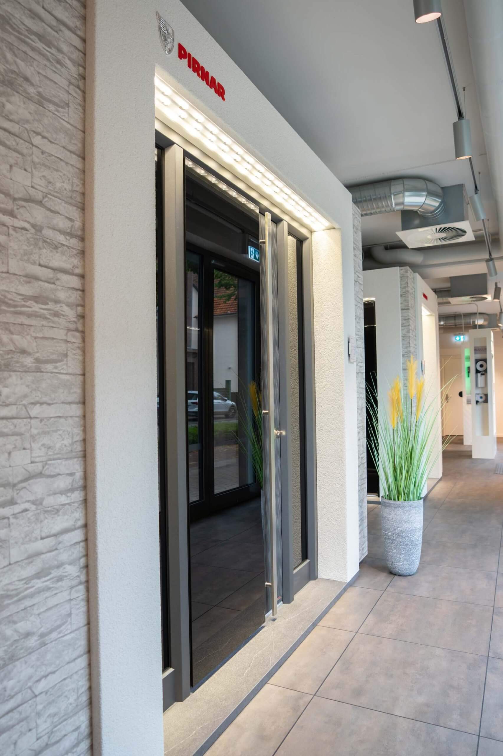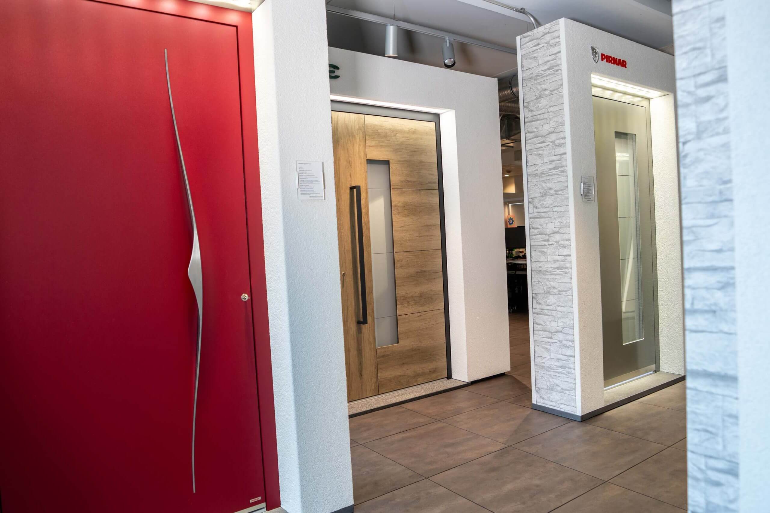 Wir schauen uns in der 200qm großen Ausstellung um und entdecken neben hochwertigen Haustüren auch Fenster und Rolladensysteme. Hier ist wirklich für jeden Geschmack und Geldbeutel das Richtige dabei. Weitere Produkte wie Außenjalousien, Absturzsicherungen, Einbruchschutz und Smart Home runden das Angebot ab.