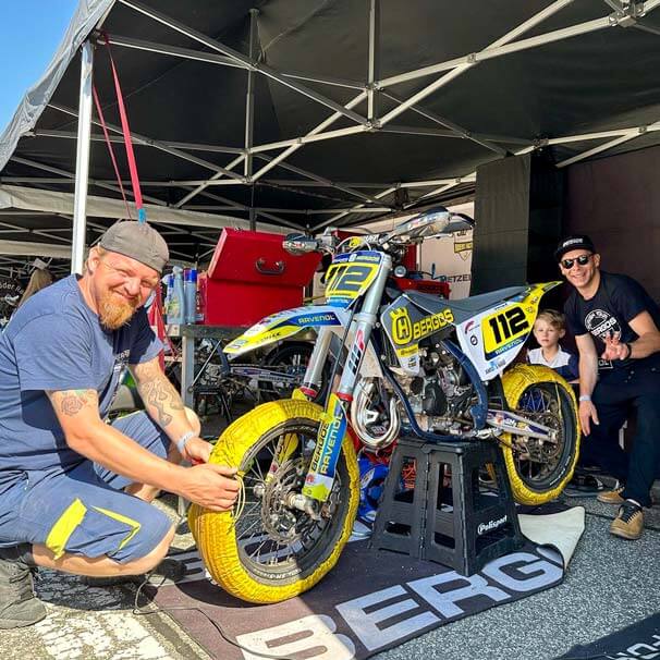 Um in der heutigen Zeit bestehen zu können braucht es neben Mama und Papa natürlich einige Unterstützer, allem voran Axel Bergfeld von der Firma Bergos Racing in Enger, der sich als Husqvarna Vertragshändler um die Hardware kümmert. Neben dem regionalen Partner Fa. Ravensberger Schmierstoffvertrieb GmbH aus Werther, namentlich als Ravenol bekannt, der Paul alles Wichtige bereitstellt, was das Motorrad zum Leben braucht, sorgt die Fa. SICKSTYLEGRAPHICS aus Bielefeld für den coolen Look von Bike und Bekleidung auf und abseits der Piste.