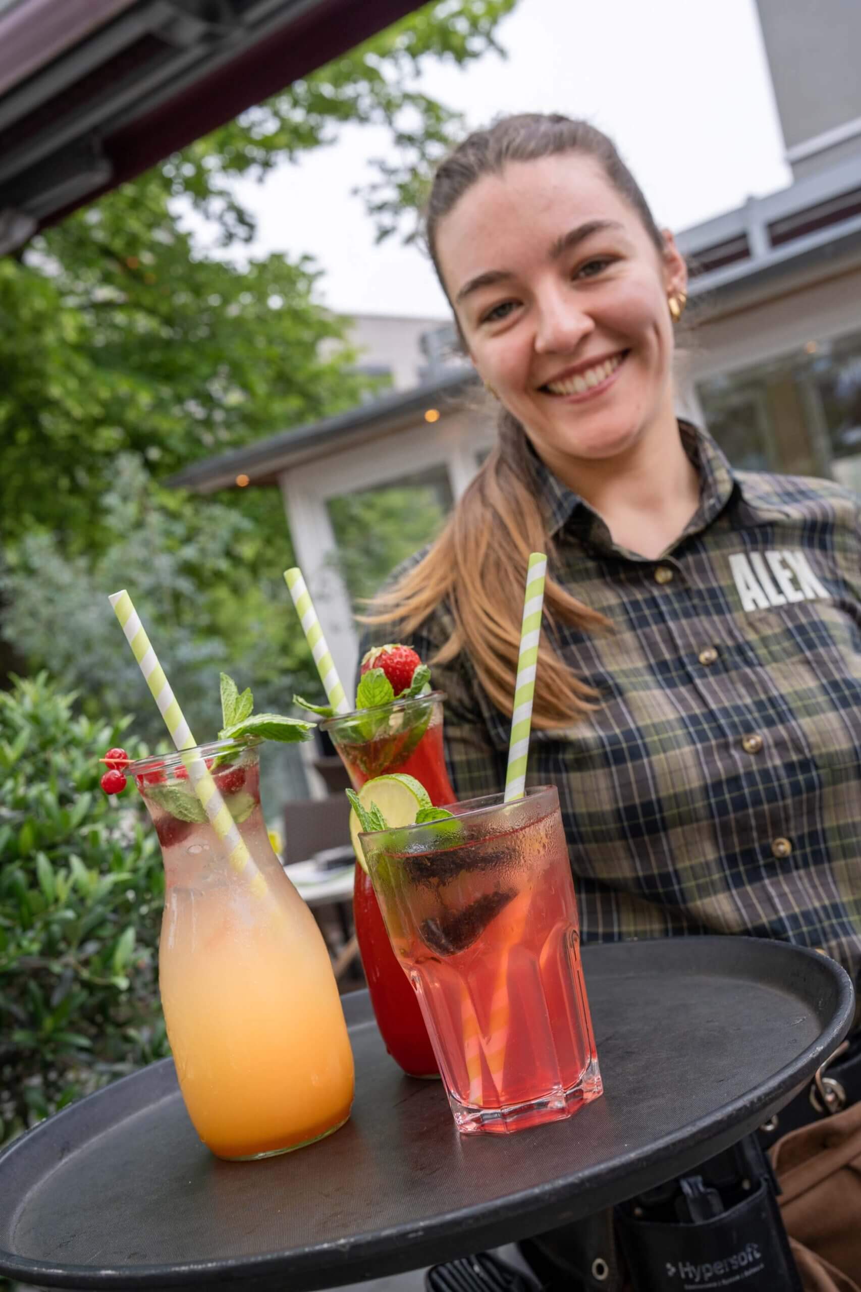Übrigens vom ersten Tag an ist das ALEX, welches mit seinem Standort in Gütersloh zu den ersten drei Franchisenehmern der Franchisegruppe ALEX zählte, durch sein vielseitiges Angebot an Speisen und Getränken der neue Treffpunkt in Gütersloh. In den Anfängen eher getränkeorientiert, zeigte sich das ALEX im Wandel der Zeit auch vom Angebot immer erwachsener. Ein köstliches Frühstück hat es hier beispielsweise immer schon gegeben. Aber jetzt, Jahrzehnte später, erfreuen sich die sensationellen Frühstücksbuffets und der Frühstücksbrunch am Sonntag so großer Beliebtheit, dass sich die Frage gar nicht mehr stellt, wo´s zum Frühstücken hingeht. Ins ALEX natürlich – ist doch klar. Die Speisen- und Getränkeauswahl hat sich also stetig weiterentwickelt und dem Zeitgeist angepasst. Wir vom Carl überzeugen uns selbst und bestellen aus der modernen Karte ein köstliches Thai Red Chicken Curry, eine Falafel Veggie Bowl, einen Alex Cheese Burger und Fish & Chips. Unsere Getränkewahl fällt auf eine trendige Blueberry Lemonade, einen ALEX Sommer Spritz, einen aromatischen Grauburgunder aus der Pfalz, sowie ein frisch Gezapftes. Mehr als begeistert können wir es kaum erwarten, bei unserem nächsten Besuch auch das süße Angebot, sowie weitere Köstlichkeiten zu probieren und mit einem Drink auf diese grandiose Erfolsgeschichte anzustoßen! Cheers!
